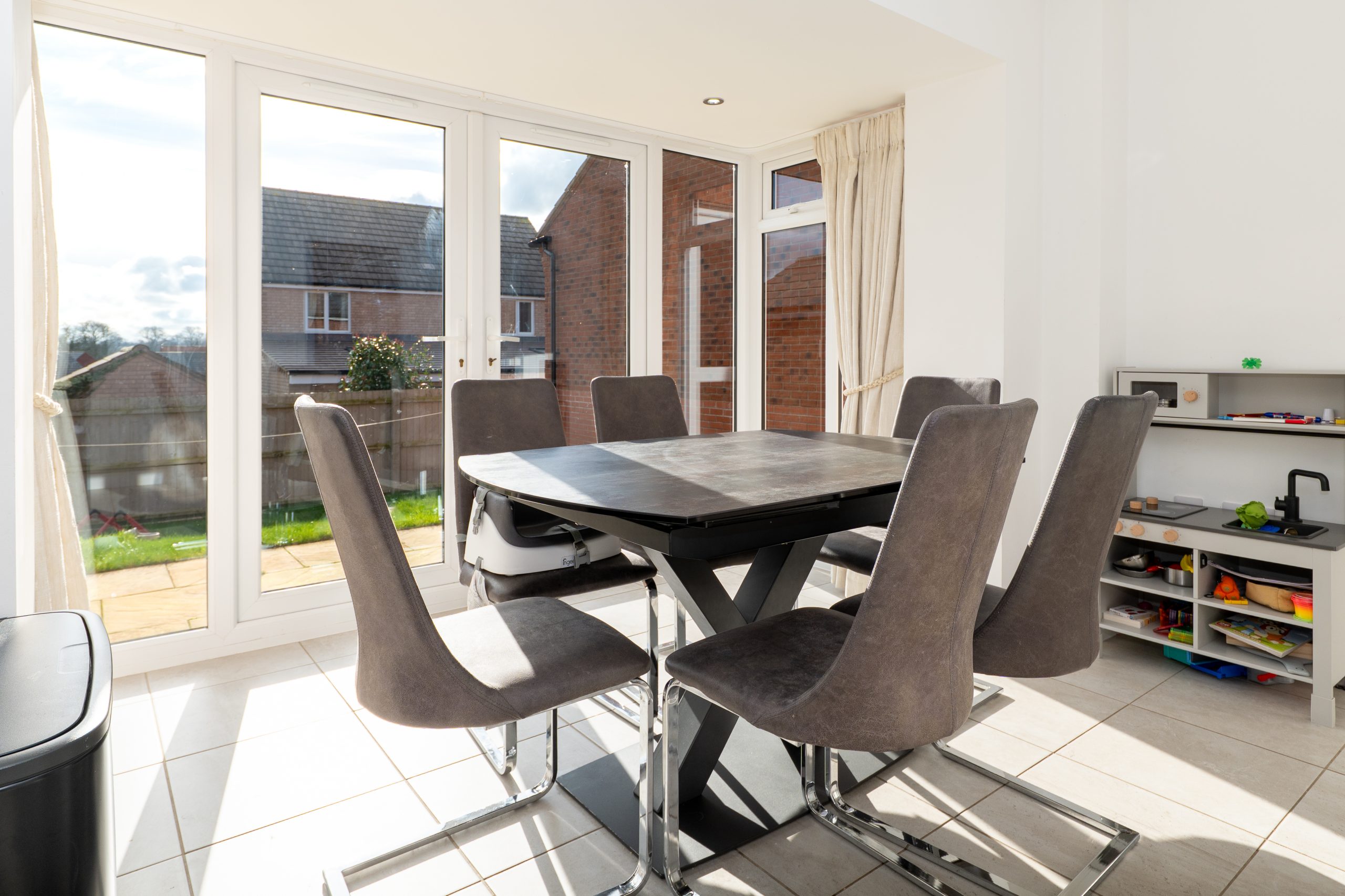 - Contemporary open-plan family dining kitchen is well-equipped with integrated appliances and is complemented by a separate utility room.