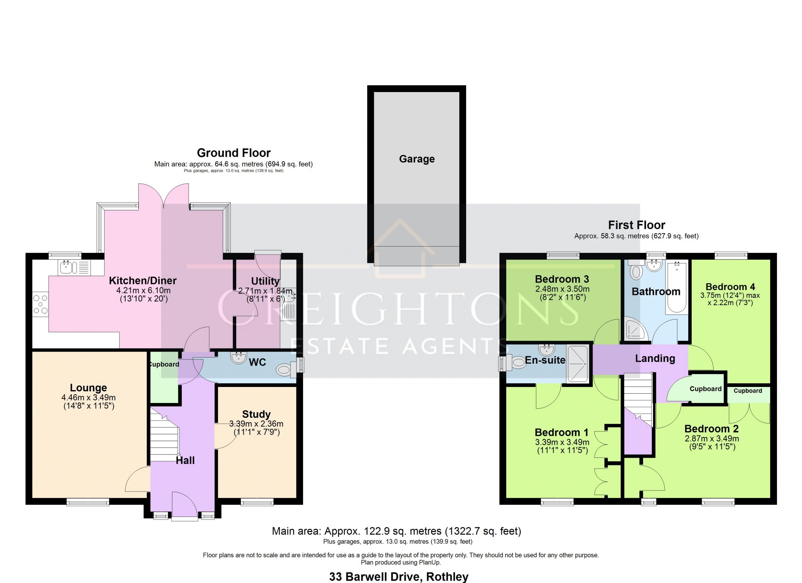 We must inform all prospective purchasers that the measurements are taken by an electronic tape and are provided as a guide only and they should not be used as accurate measurements. We have not tested any mains services, gas or electric appliances, or fixtures and fittings mentioned in these details, therefore, prospective purchasers should satisfy themselves before committing to purchase. Intending purchasers must satisfy themselves by inspection or otherwise to the correctness of the statements contained in these particulars. Creightons Estate Agents (nor any person in their employment) has any authority to make any representation or warranty in relation to the property. The floor plans are not to scale and are intended for use as a guide to the layout of the property only. They should not be used for any other purpose. Similarly, the plans are not designed to represent the actual décor found at the property in respect of flooring, wall coverings or fixtures and fittings.