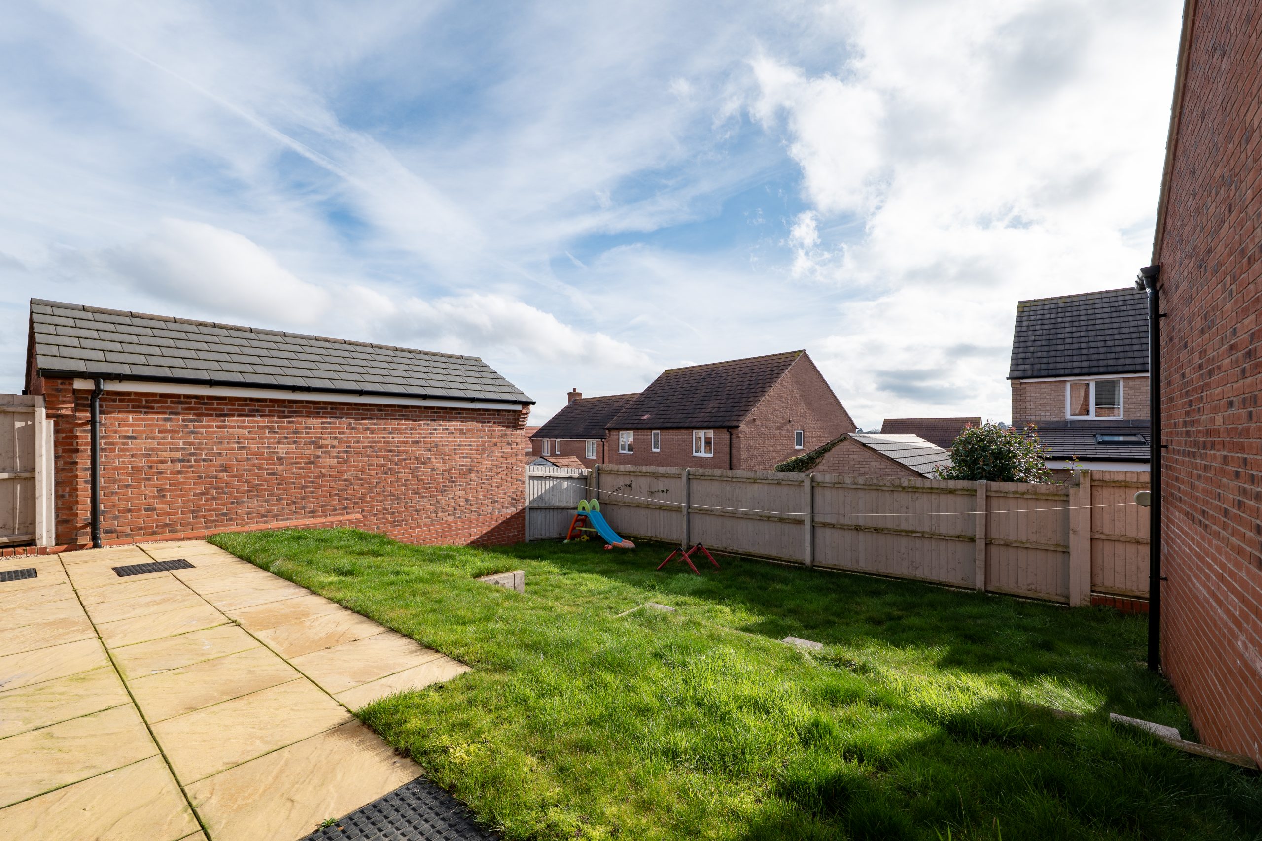 The property includes off-road parking adjacent to the home, with side access leading to a low-maintenance rear garden. The garden features a paved patio area and laid-to-lawn space, making it perfect for outdoor entertaining and dining. This setup enhances both convenience and outdoor living appeal.