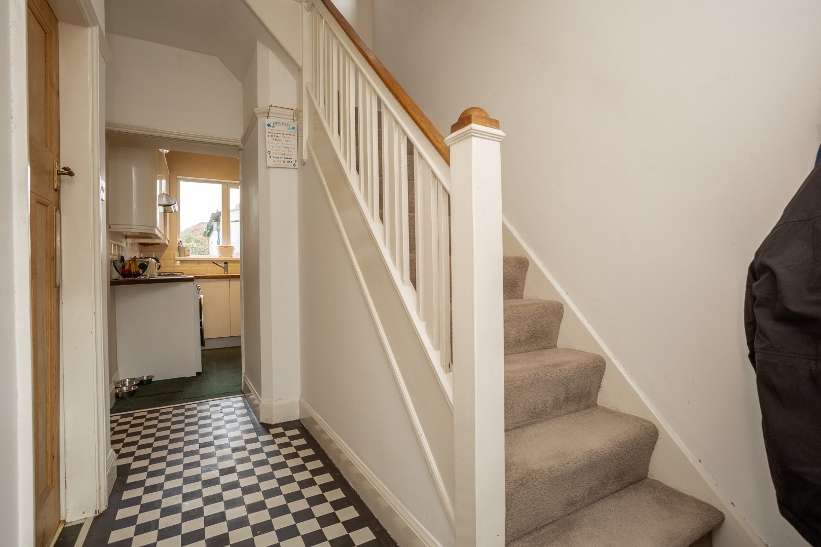 Upon entering the property, you are welcomed through a charming porch into a welcoming entrance hallway featuring a Victorian-style tiled floor that sets the tone for the property's period character. To the left, the comfortable lounge provides an ideal space for relaxation and family gatherings. To the rear of the home, the dining room offers a versatile space for formal or casual meals, with views of the garden. Adjacent to the dining area, the kitchen has been thoughtfully updated with gloss-finish cabinetry. There is an integrated oven, gas hob and extractor fan as well as space for a washing machine making everyday living convenient.