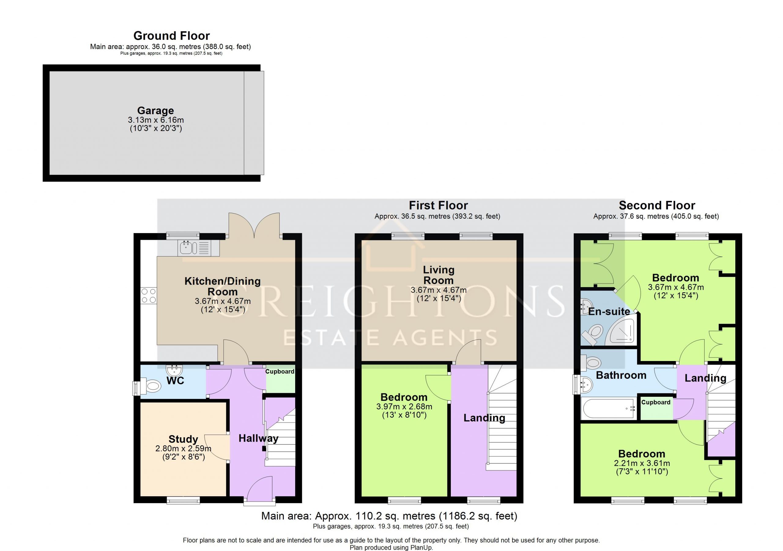 We must inform all prospective purchasers that the measurements are taken by an electronic tape and are provided as a guide only and they should not be used as accurate measurements. We have not tested any mains services, gas or electric appliances, or fixtures and fittings mentioned in these details, therefore, prospective purchasers should satisfy themselves before committing to purchase. Intending purchasers must satisfy themselves by inspection or otherwise to the correctness of the statements contained in these particulars. Creightons Estate Agents (nor any person in their employment) has any authority to make any representation or warranty in relation to the property. The floor plans are not to scale and are intended for use as a guide to the layout of the property only. They should not be used for any other purpose. Similarly, the plans are not designed to represent the actual décor found at the property in respect of flooring, wall coverings or fixtures and fittings.