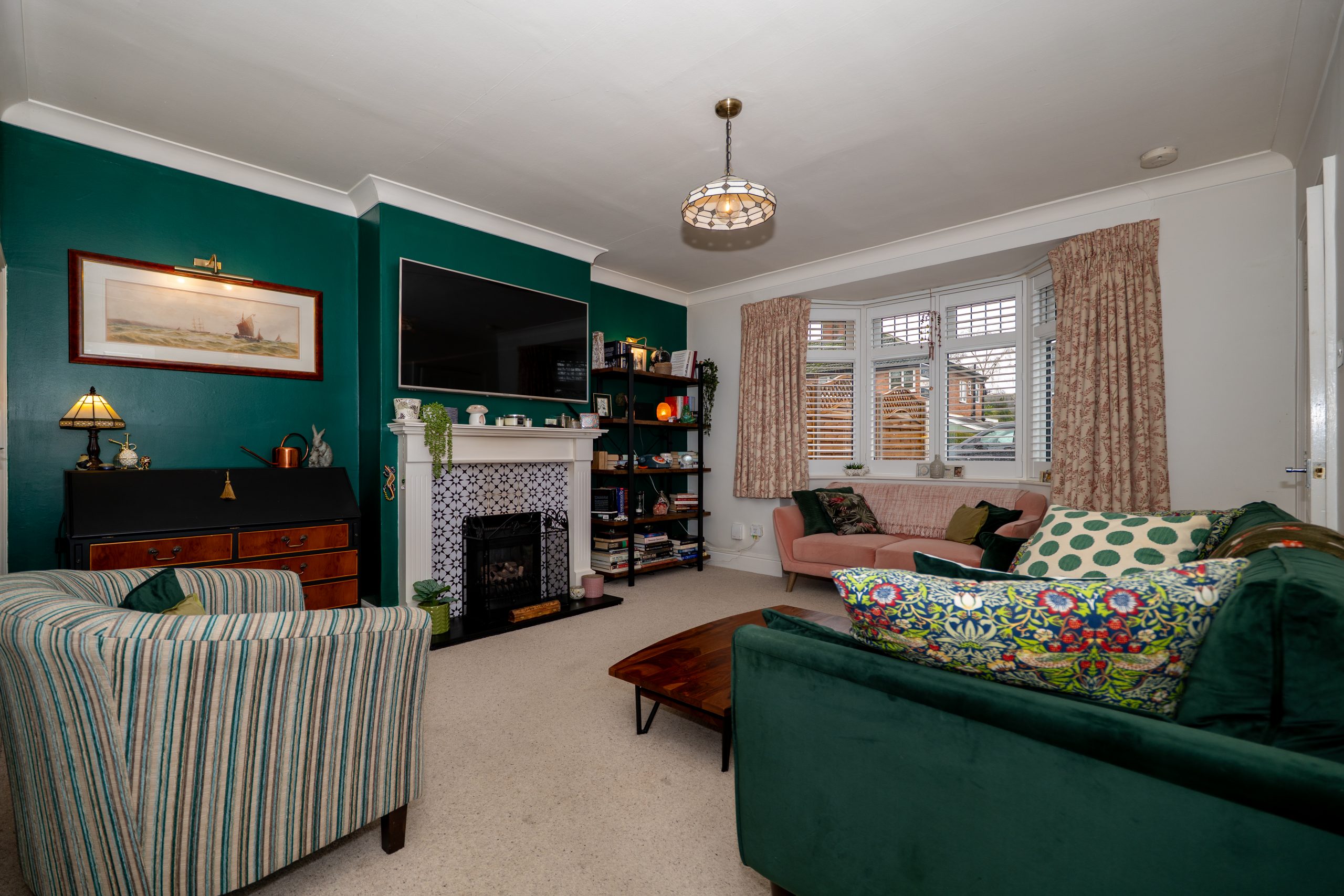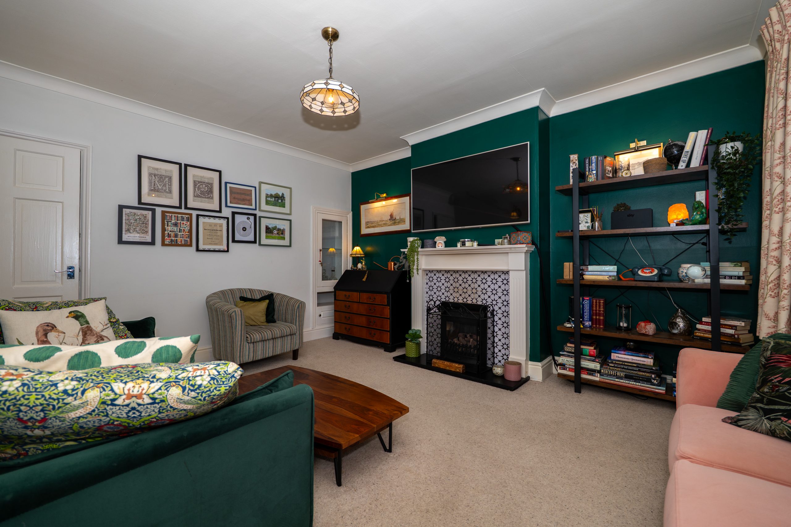 The property is entered via a welcoming hallway that leads to the first floor and the front-facing lounge. The spacious lounge is beautifully presented, featuring a large bay window that floods the room with natural light, elegant coving, and a charming feature fireplace. From here, you can access the rear-facing kitchen/diner.