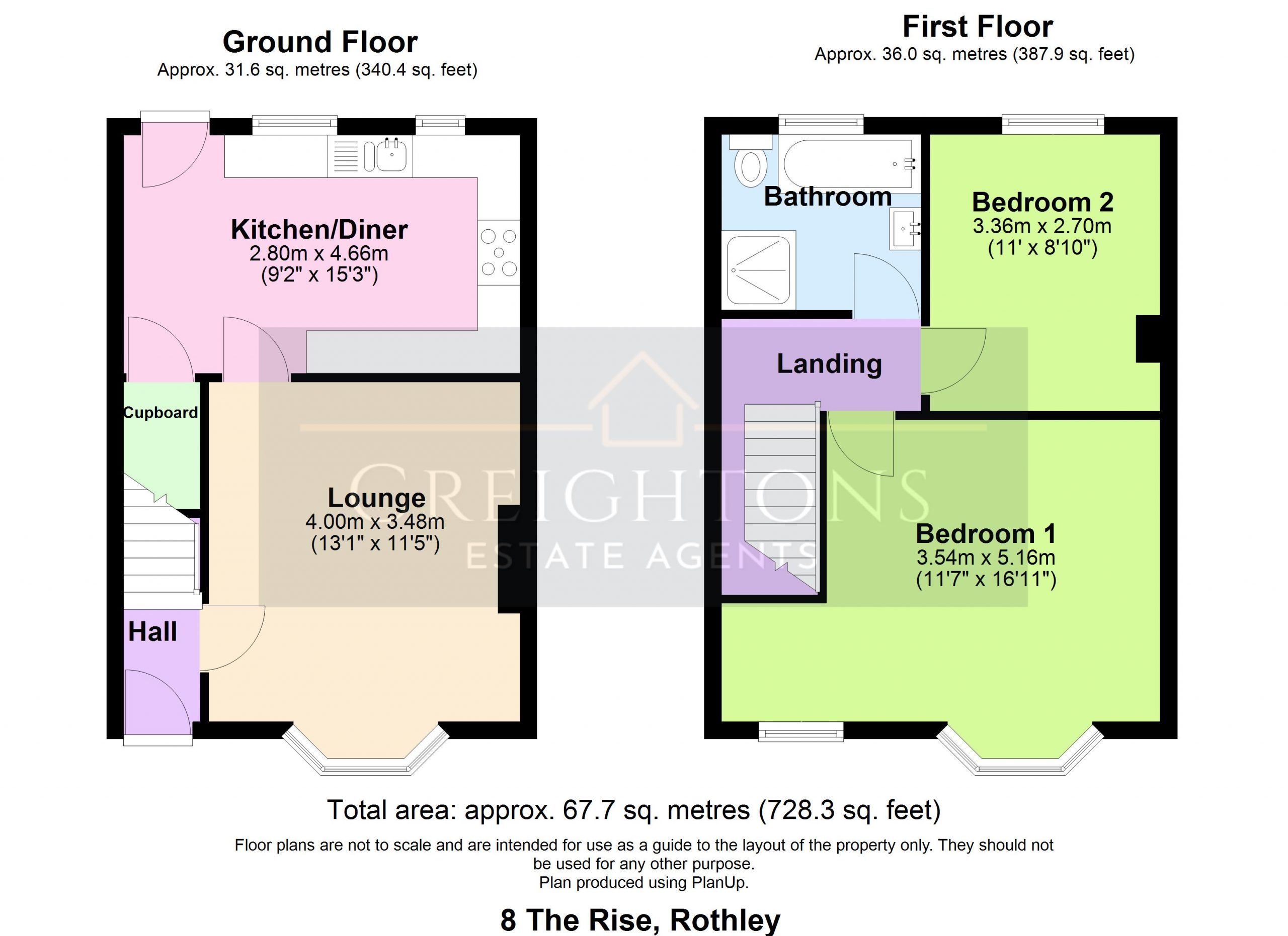 We must inform all prospective purchasers that the measurements are taken by an electronic tape and are provided as a guide only and they should not be used as accurate measurements. We have not evaluated any mains services, gas or electric appliances, or fixtures and fittings mentioned in these details, therefore, prospective purchasers should satisfy themselves before committing to purchase. Intending purchasers must satisfy themselves by inspection or otherwise to the correctness of the statements contained in these particulars. Creightons Estate Agents (nor any person in their employment) has any authority to make any representation or warranty in relation to the property. The floor plans are not to scale and are intended for use as a guide to the layout of the property only. They should not be used for any other purpose. Similarly, the plans are not designed to represent the actual décor found at the property in respect of flooring, wall coverings or fixtures and fittings.