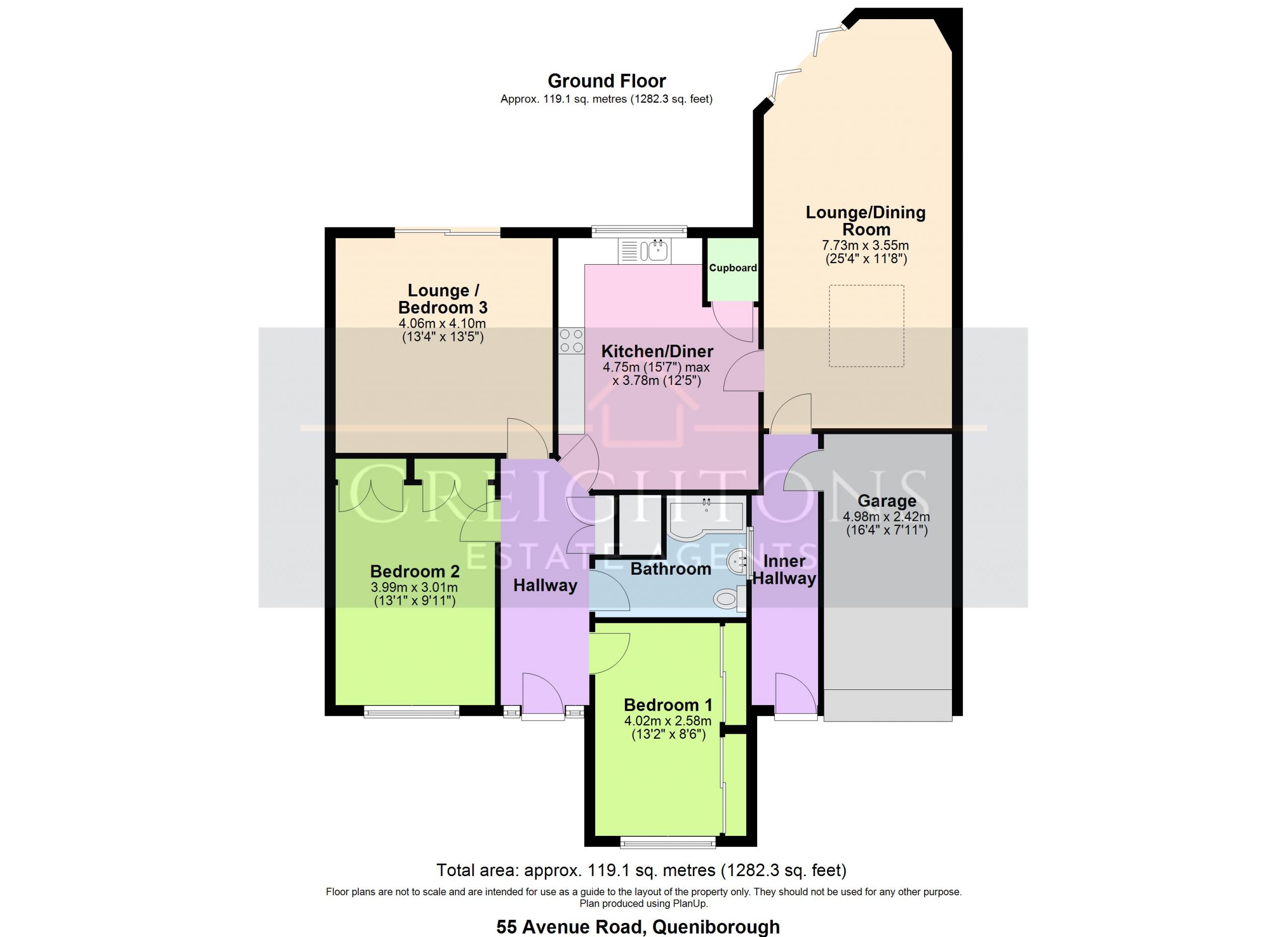 We must inform all prospective purchasers that the measurements are taken by an electronic tape and are provided as a guide only and they should not be used as accurate measurements. We have not tested any mains services, gas or electric appliances, or fixtures and fittings mentioned in these details, therefore, prospective purchasers should satisfy themselves before committing to purchase. Intending purchasers must satisfy themselves by inspection or otherwise to the correctness of the statements contained in these particulars. Creightons Estate Agents (nor any person in their employment) has any authority to make any representation or warranty in relation to the property. The floor plans are not to scale and are intended for use as a guide to the layout of the property only. They should not be used for any other purpose. Similarly, the plans are not designed to represent the actual décor found at the property in respect of flooring, wall coverings or fixtures and fittings.