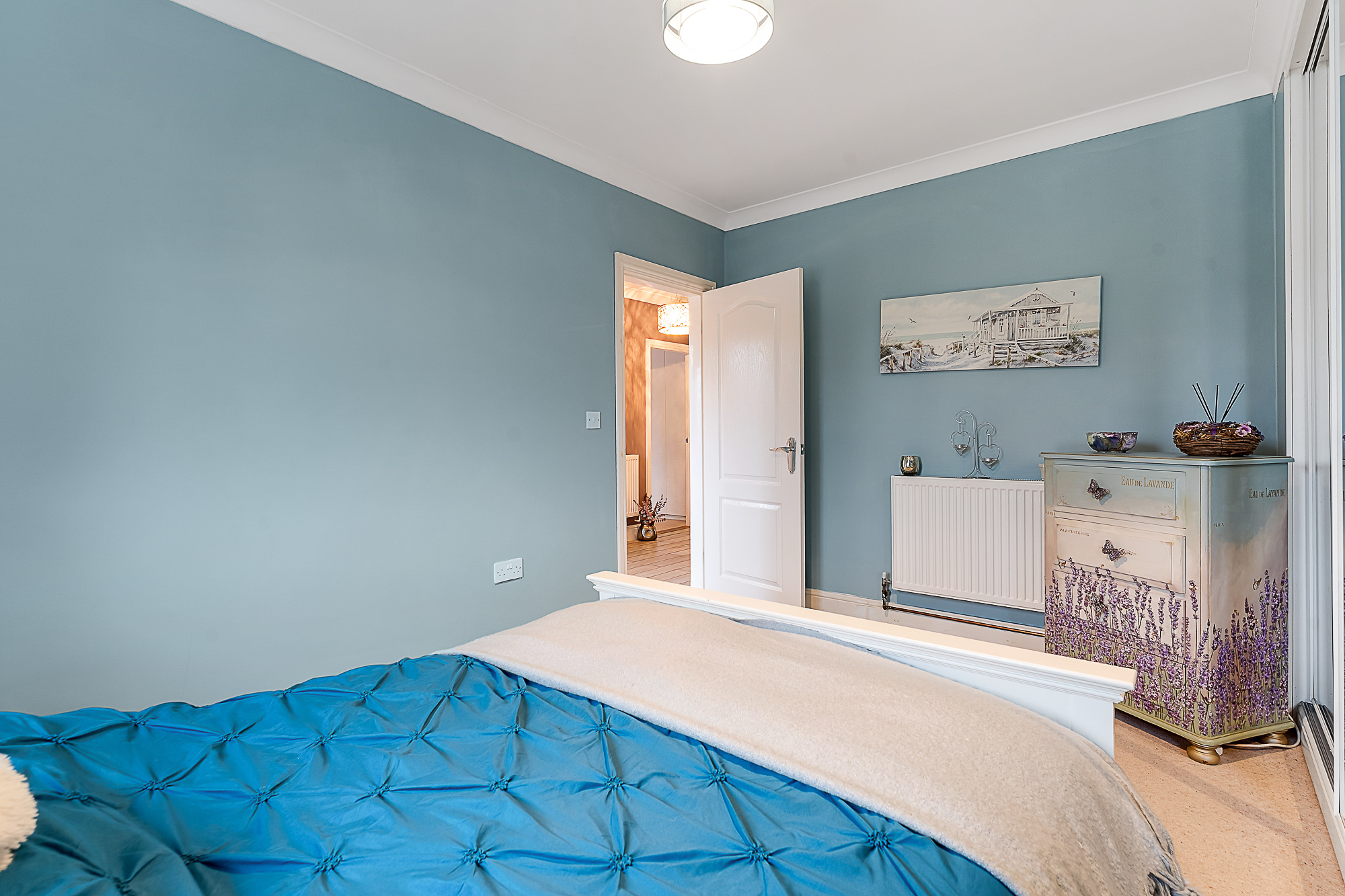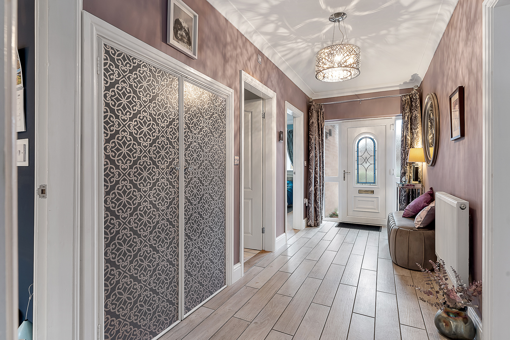 The property greets you with a spacious hallway that provides access to all rooms and storage cupboard.