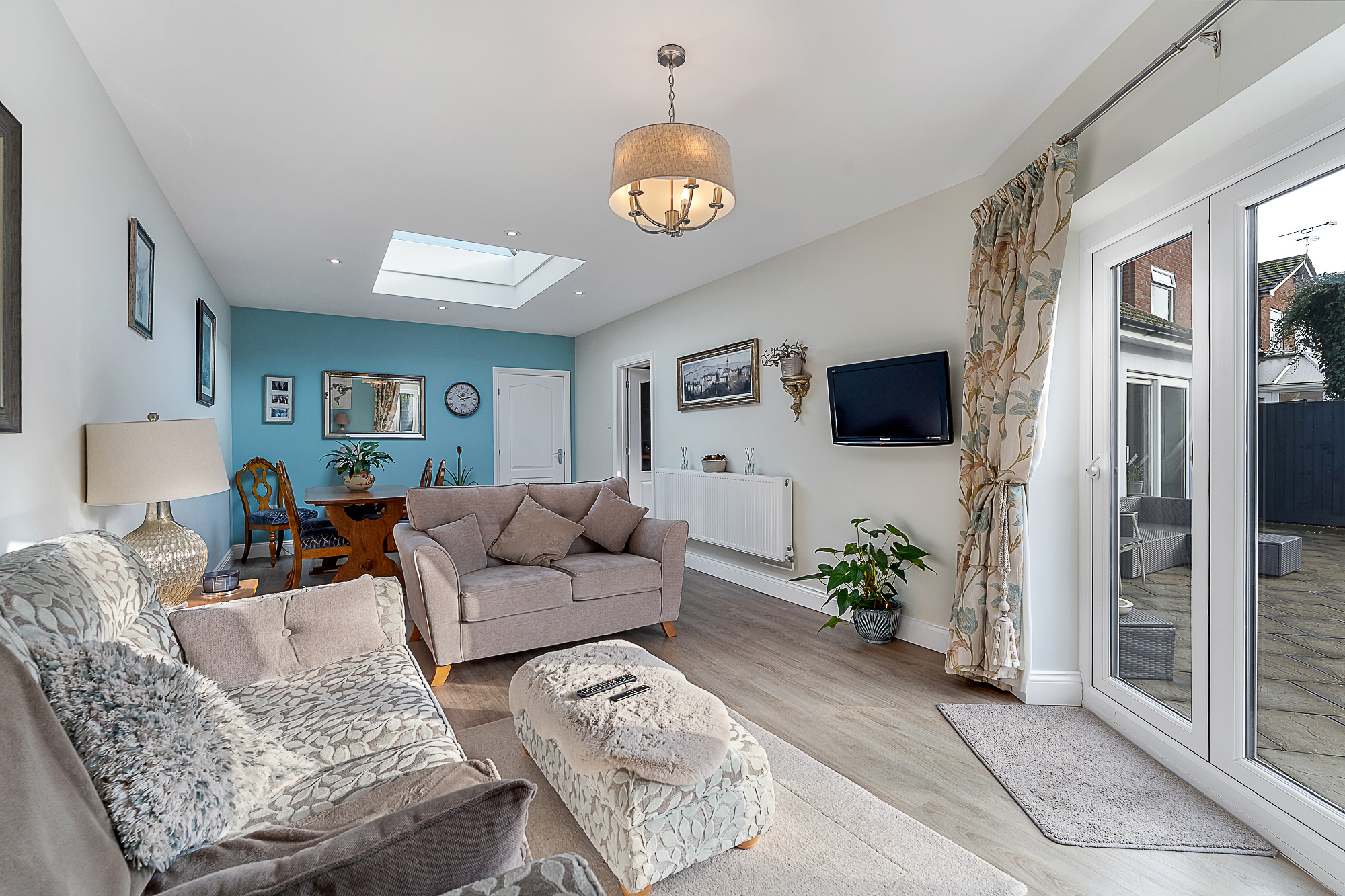 • Spacious, bright and airy living room/dining room with roof lantern