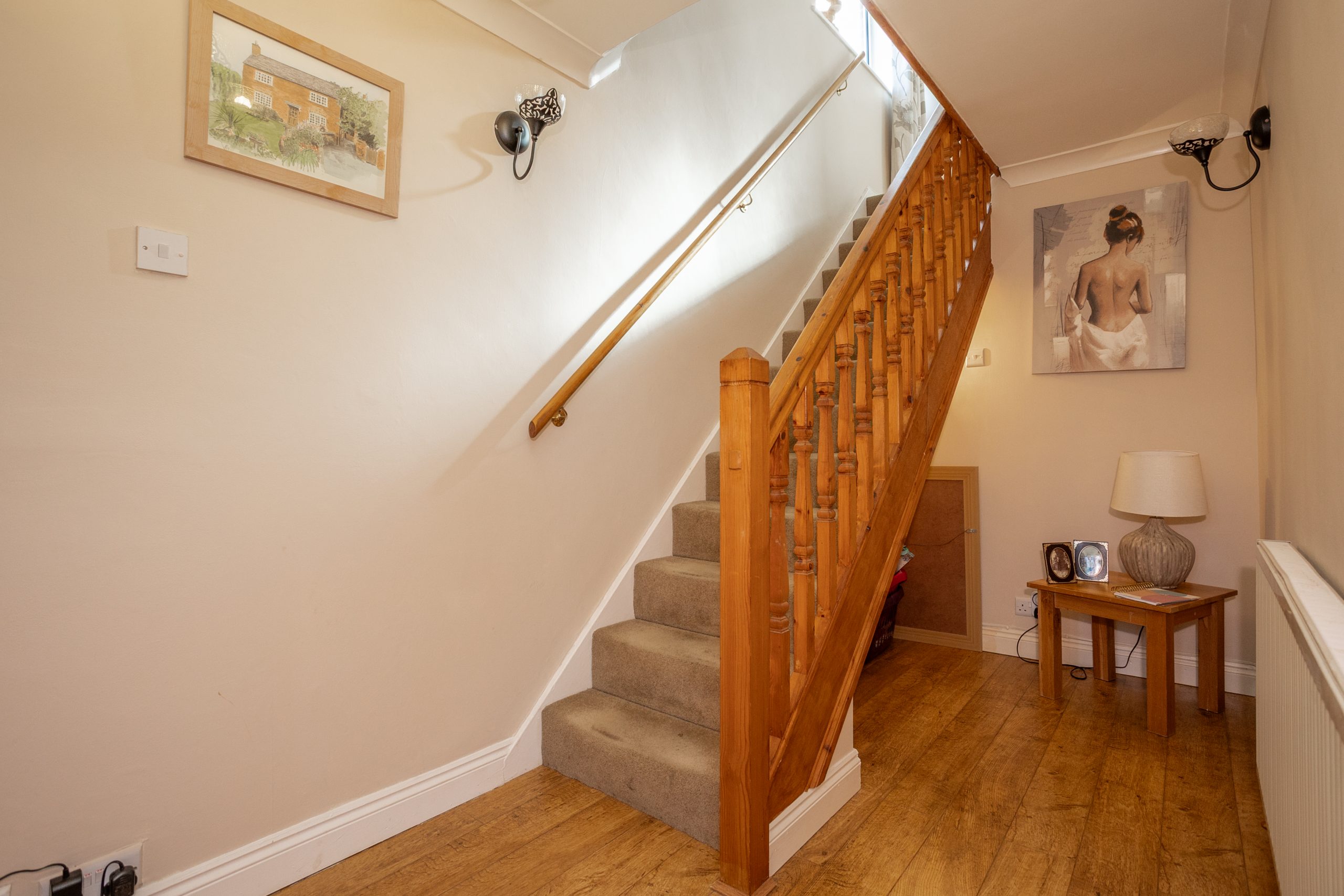 The property is entered via a handy porch, ideal for storing coats and shoes, before opening into a bright and airy hallway with wooden flooring and neutral décor. From here, stairs rise to the first floor, with an understairs storage area and a doorway leading through to the open plan living and dining room.