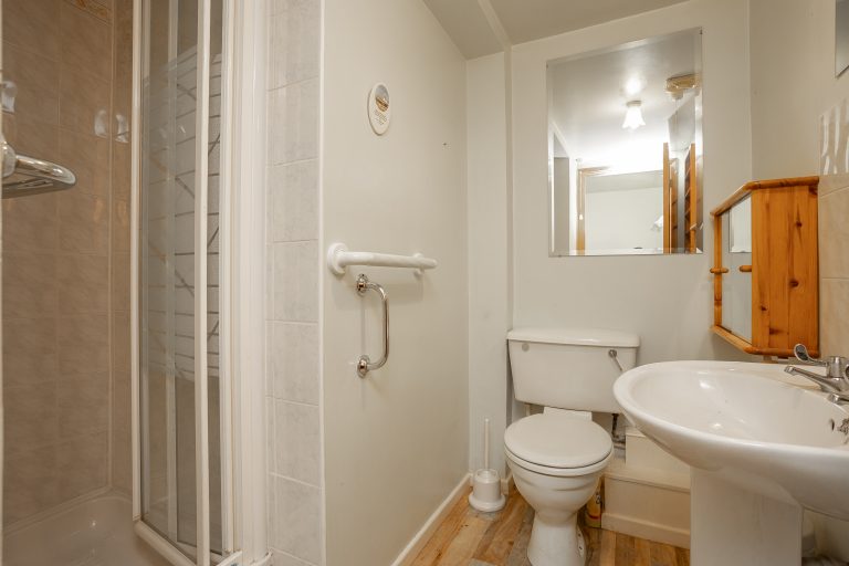 The second bedroom is fitted with built in wardrobes and drawers for storage. The bathroom has a bath/shower over, and vanity unit.
