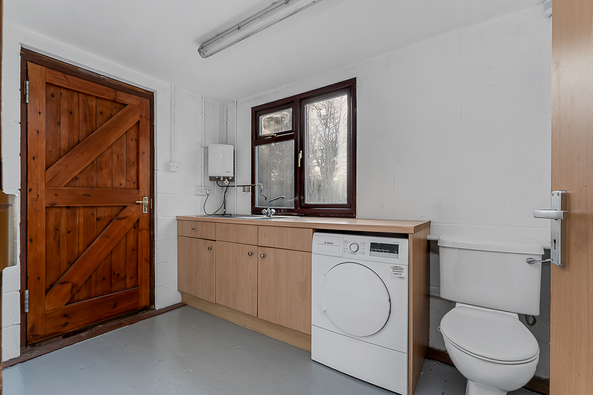 The kitchen also provides access to the utility area, fitted with a second sink, additional storage, space for appliances, matching flagstone flooring, a rear garden door and access to the convenient ground floor WC.