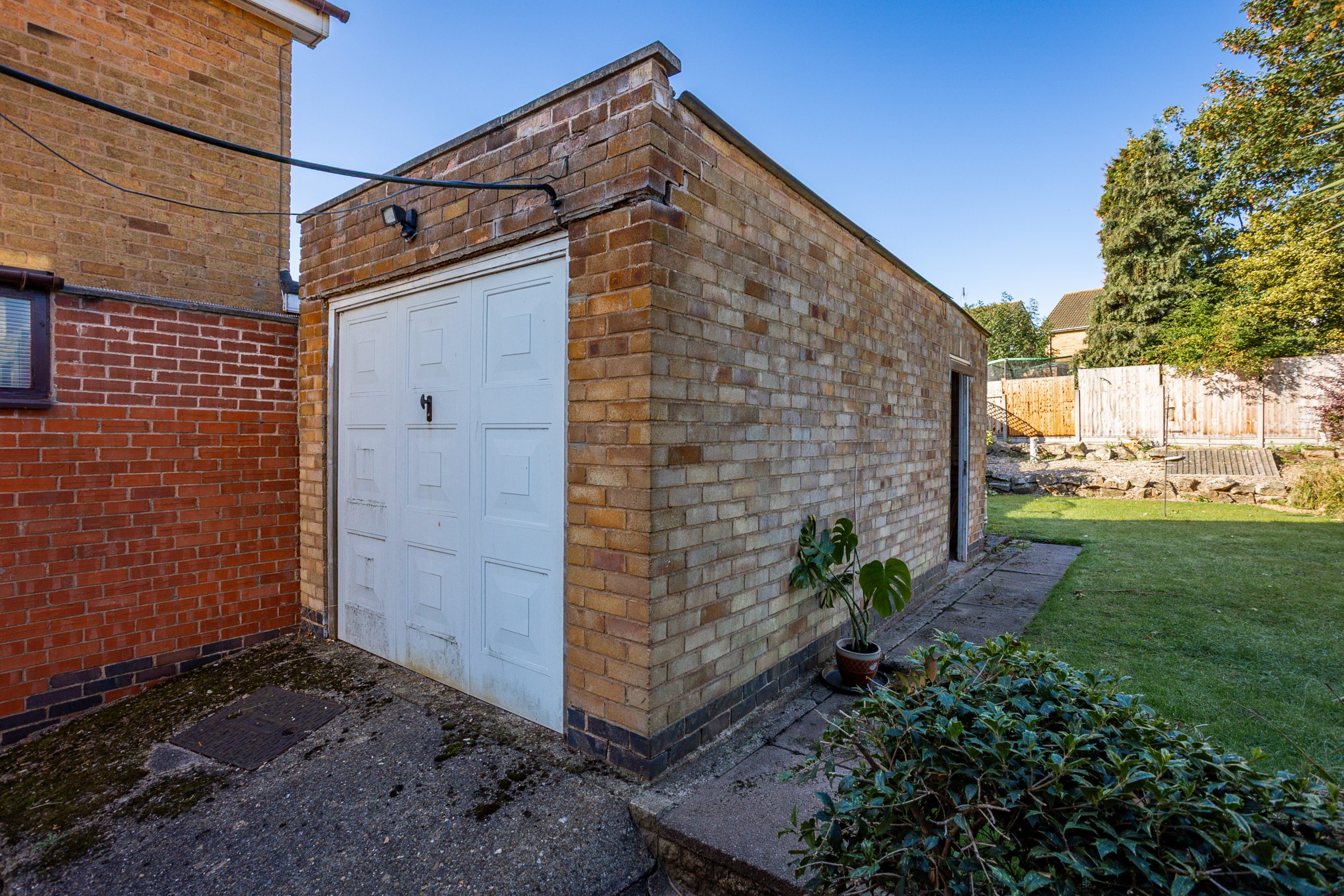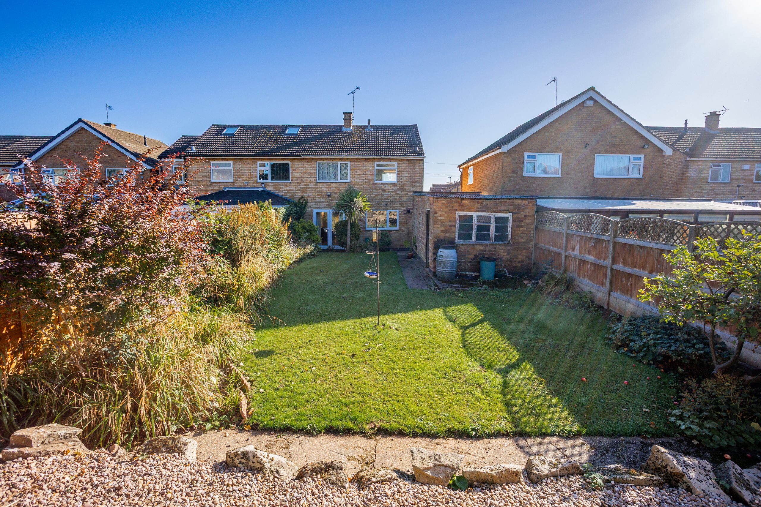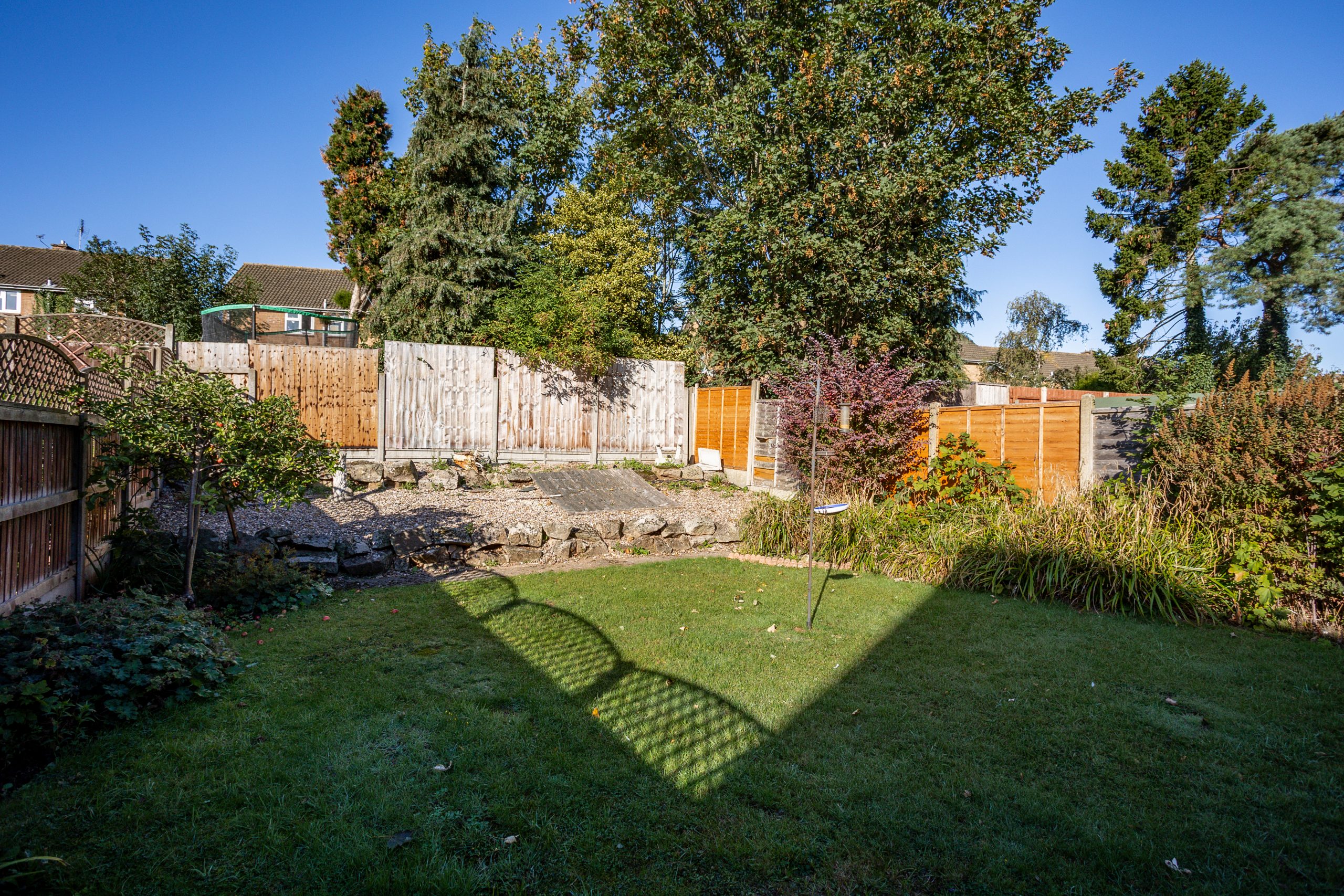 The front garden offers a welcoming first impression, predominantly laid to lawn and framed by a variety of mature plants and shrubs. A generous driveway provides ample off-road parking and leads to a single garage positioned at the rear of the property. Beyond this, the enclosed rear garden enjoys a private, leafy outlook and is again mainly laid to lawn, complemented by well-established trees, shrubs, and flower borders, ideal for relaxing or entertaining outdoors.