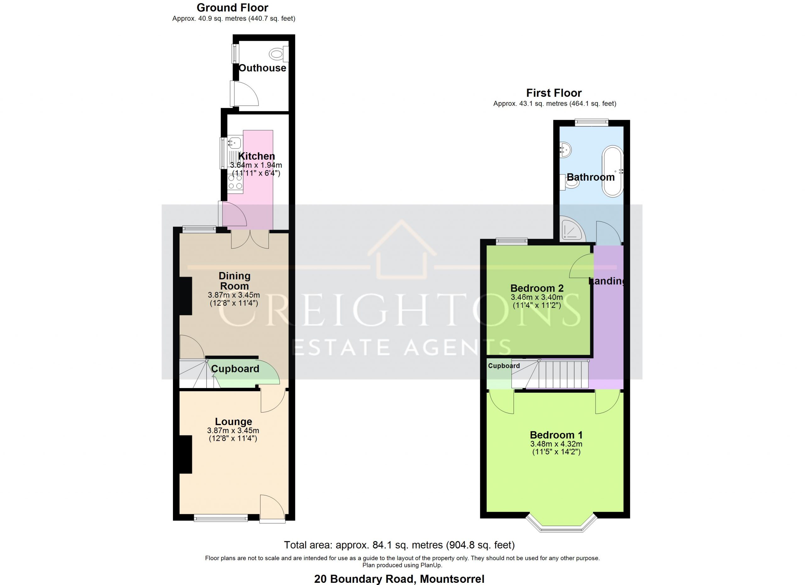 We must inform all prospective purchasers that the measurements are taken by an electronic tape and are provided as a guide only and they should not be used as accurate measurements. We have not tested any mains services, gas or electric appliances, or fixtures and fittings mentioned in these details, therefore, prospective purchasers should satisfy themselves before committing to purchase. Intending purchasers must satisfy themselves by inspection or otherwise to the correctness of the statements contained in these particulars. Creightons Estate Agents (nor any person in their employment) has any authority to make any representation or warranty in relation to the property. The floor plans are not to scale and are intended for use as a guide to the layout of the property only. They should not be used for any other purpose. Similarly, the plans are not designed to represent the actual décor found at the property in respect of flooring, wall coverings or fixtures and fittings.