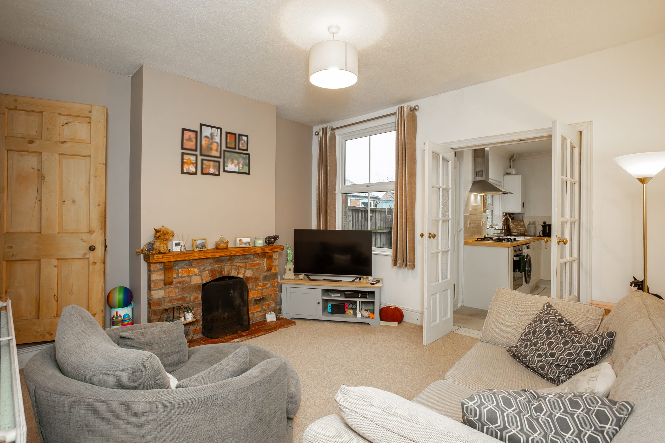 Towards the rear, the cosy living room overlooks the rear garden and features a stunning brick feature fireplace with further open fire. Internal doors open onto the kitchen. The beautifully fitted kitchen has a range of modern units with complimentary worktops and tiled splashback. Equipped with integrated oven, gas hob, and extractor fan and offers space for a fridge/freezer and washing machine.