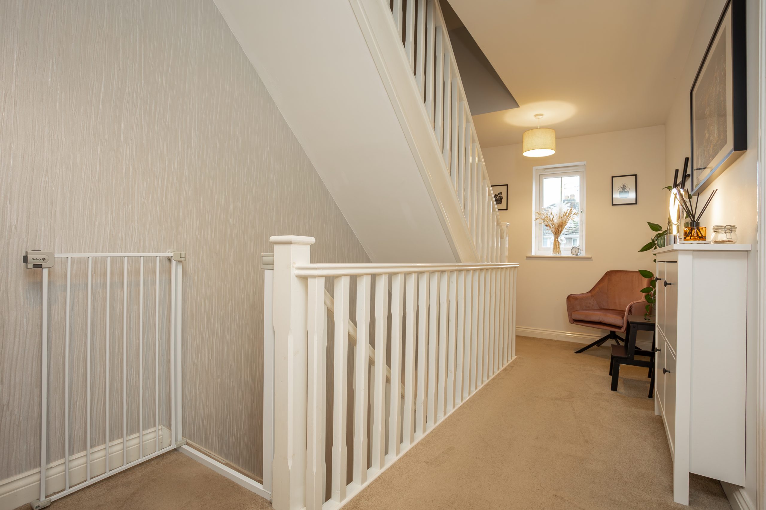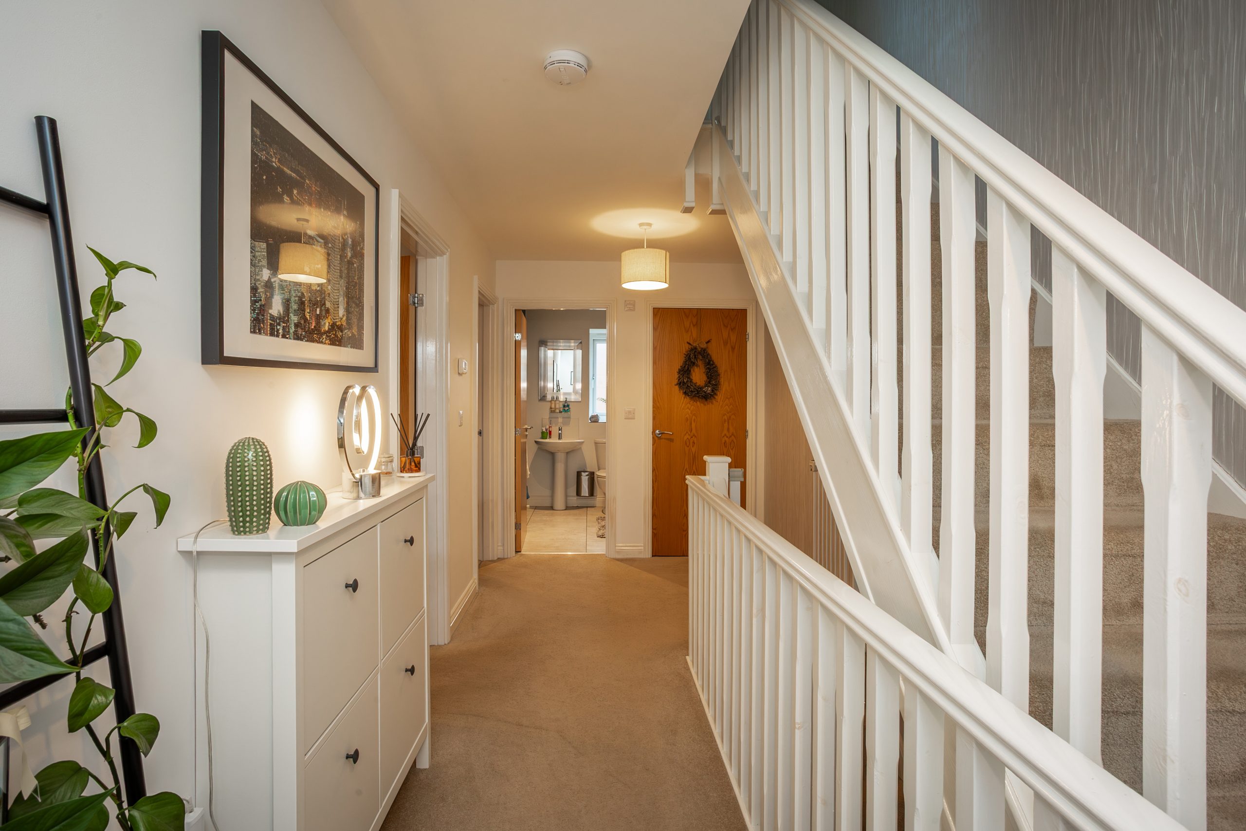 A small landing area providing access to the bedroom and en suite.