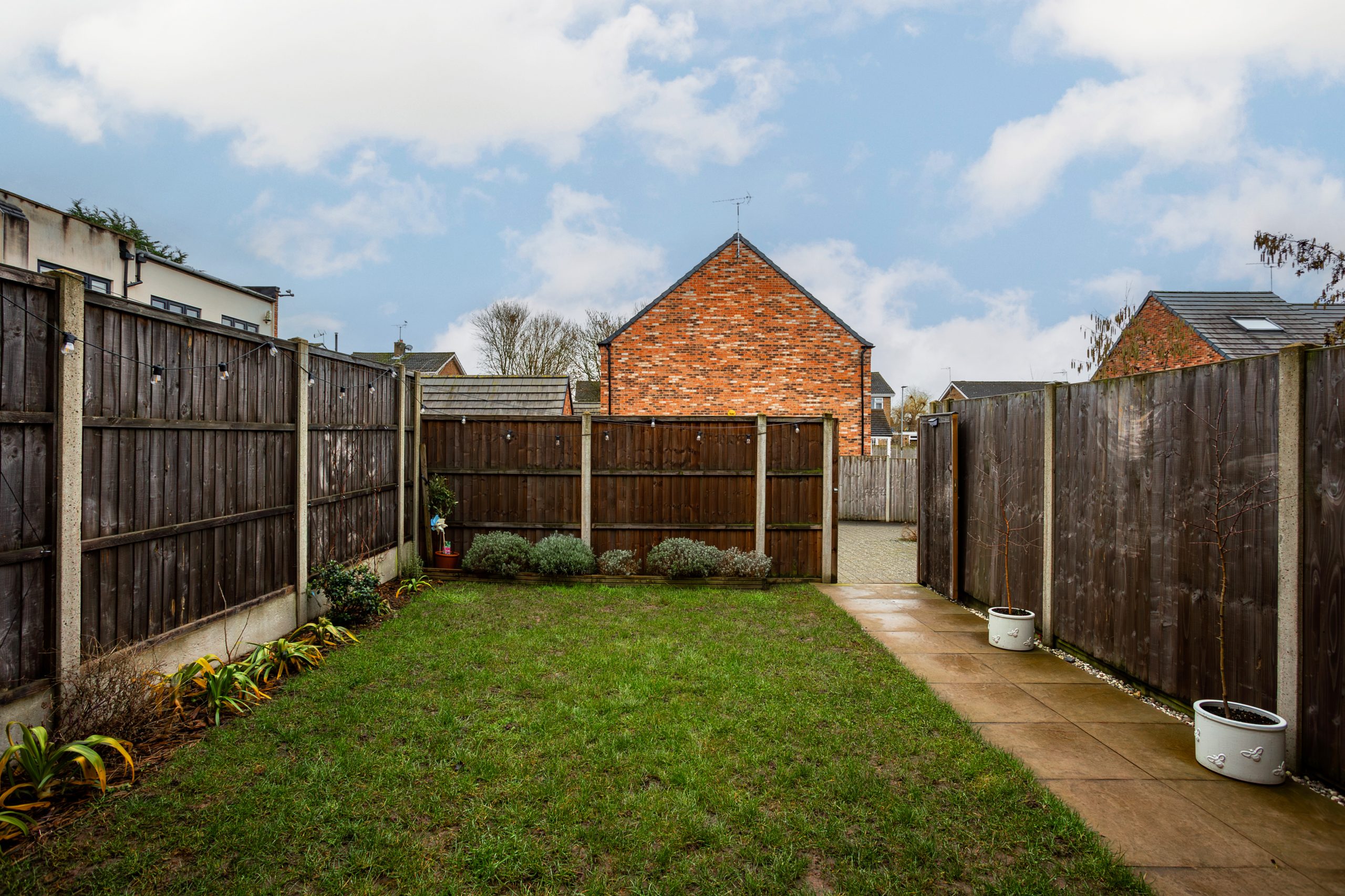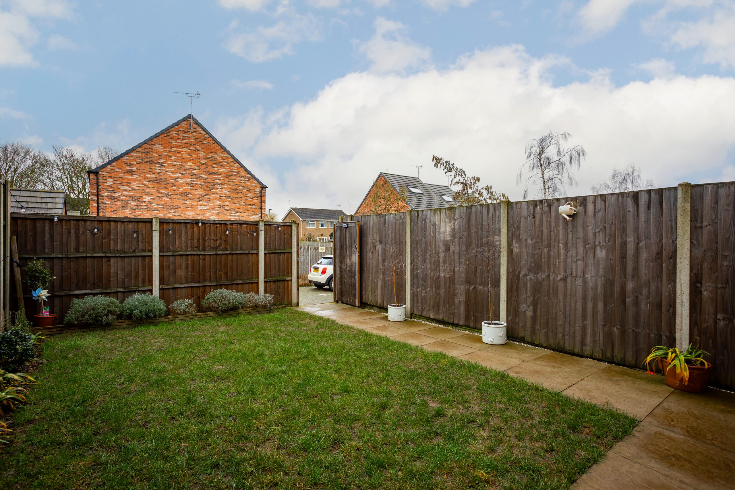 The front garden is neatly enclosed by a low wall and features a selection of established shrubs, creating instant kerb appeal. To the rear, the fully enclosed garden is mainly laid to lawn with a patio area ideal for outdoor seating, complemented by further planting. A rear gate provides direct access to the two allocated parking spaces situated behind the property.