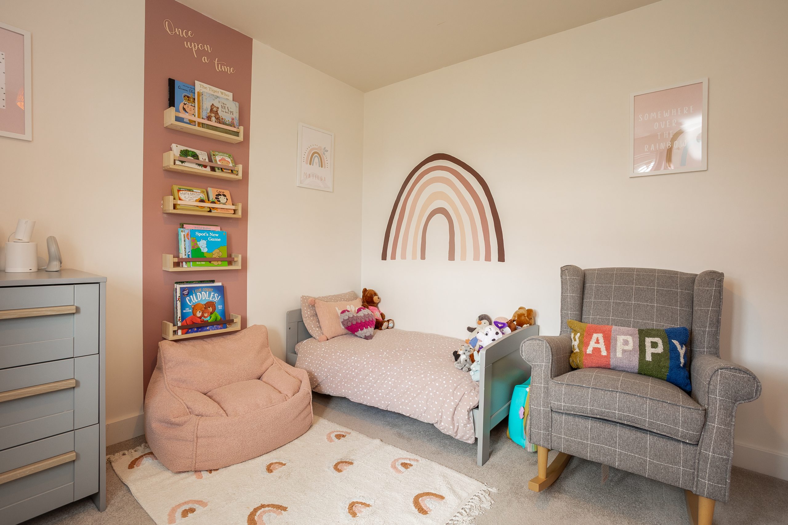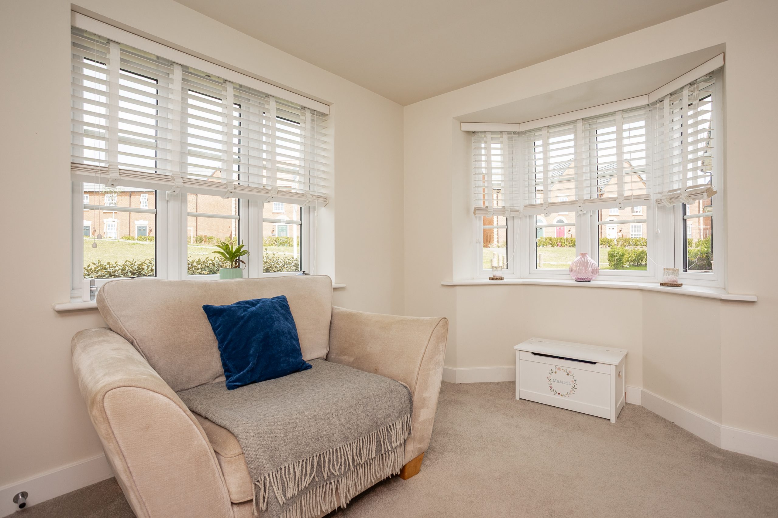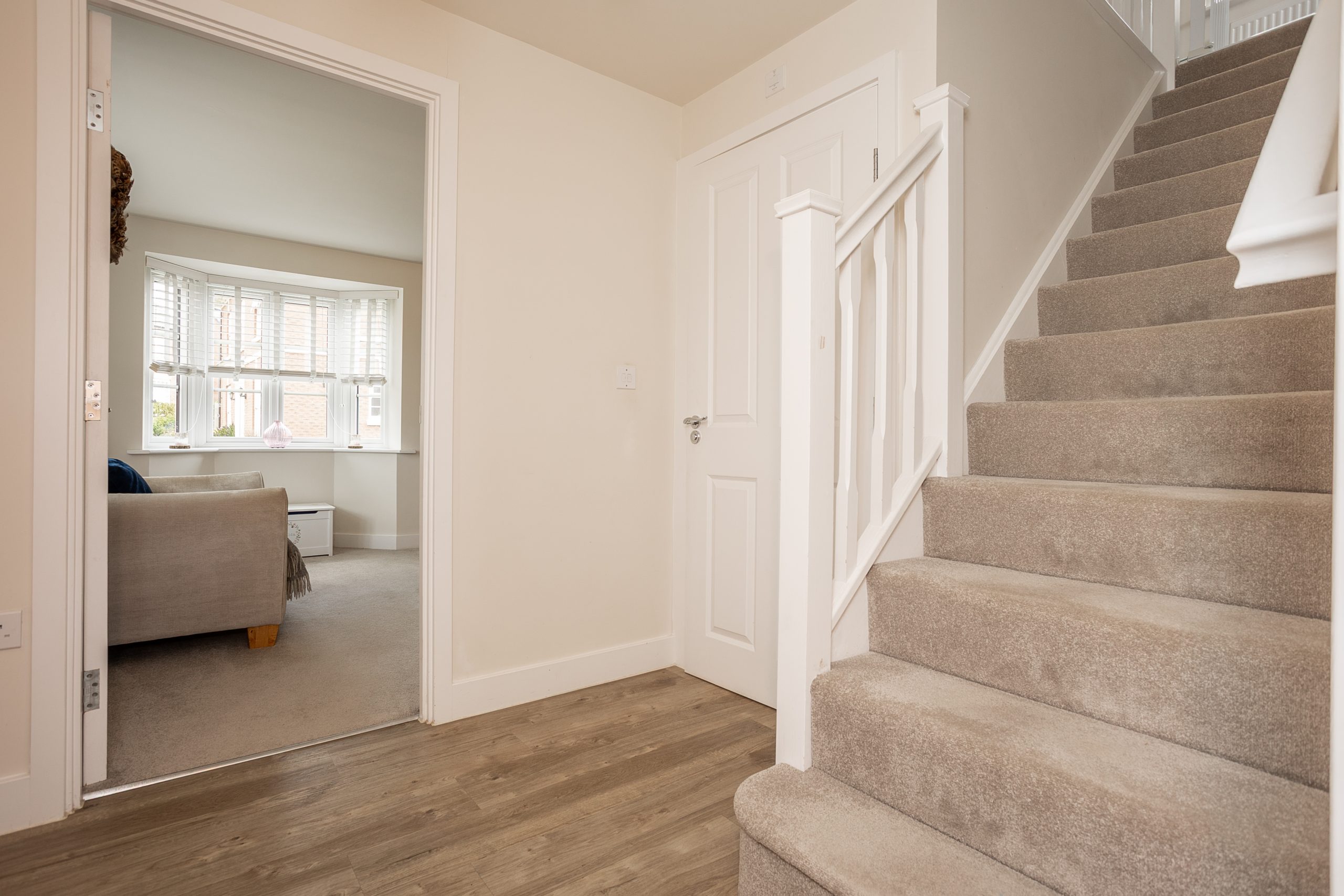 The spacious entrance hallway welcomes you into this beautifully designed home, leading to a bright and airy sitting room on the left, a convenient downstairs WC, and an impressive open-plan kitchen/dining area to the right. A staircase ascends to the first floor, ensuring a seamless flow throughout the property. The sitting room benefits from dual-aspect windows, flooding the space with natural light and enhancing its stylish, modern décor, creating a warm and inviting atmosphere. The downstairs WC features a sleek white low-level WC and wash hand basin, complemented by neutral, contemporary styling. The open-plan kitchen/dining area is a true highlight, boasting dual-aspect windows with stunning views overlooking the park and patio doors that open onto a beautifully private, non-overlooked rear garden. The kitchen is fitted with a range of elegant light grey wall and base units, complemented by a stylish worktop and high-quality integrated appliances, including a double oven, hob, extractor fan, dishwasher, and fridge freezer. A separate utility area provides additional space for appliances, houses the boiler, provides further handy understairs storage and offers direct access to the rear garden, ensuring practicality and efficiency for modern family living.