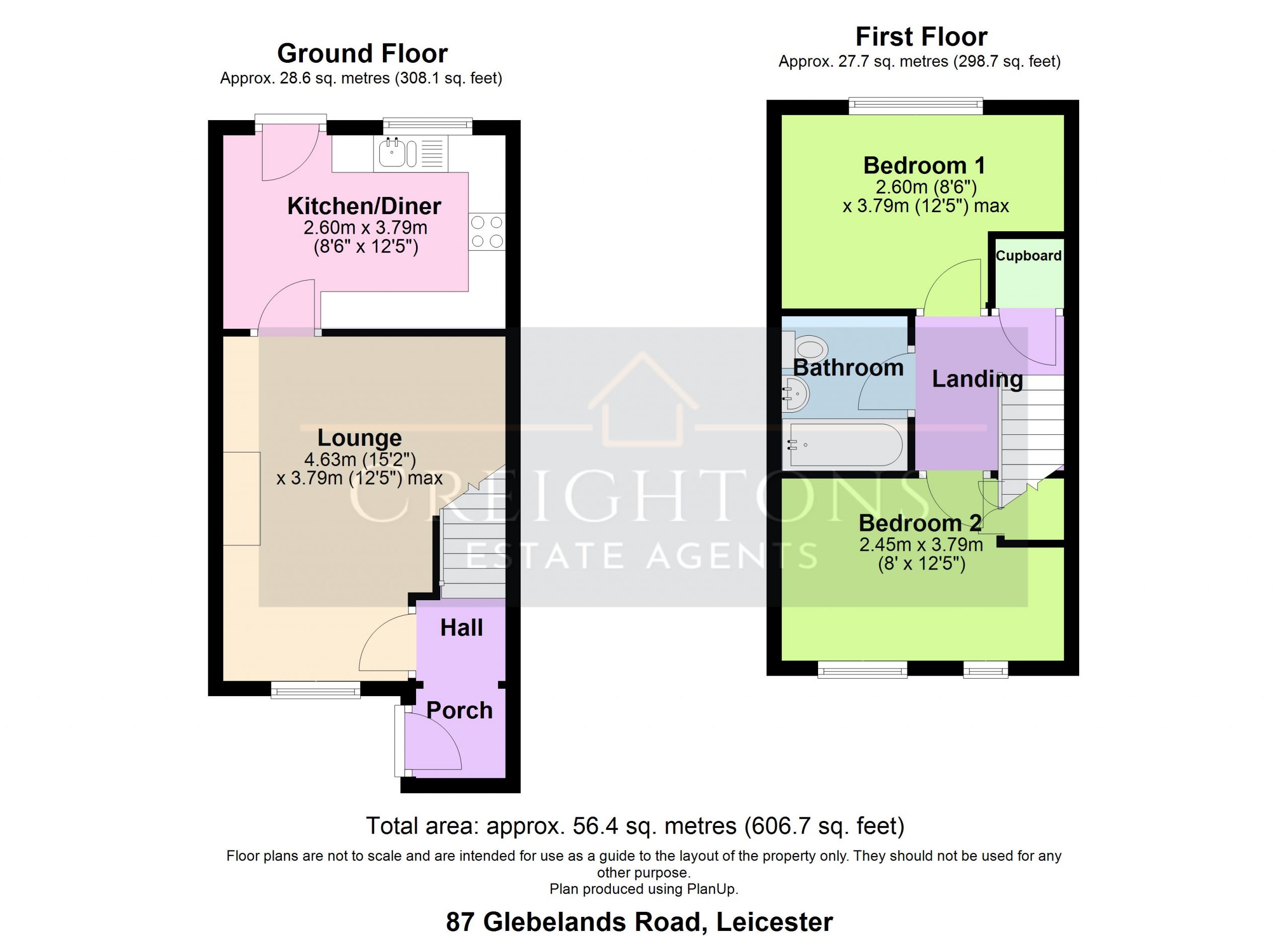 We must inform all prospective purchasers that the measurements are taken by an electronic tape and are provided as a guide only and they should not be used as accurate measurements. We have not tested any mains services, gas or electric appliances, or fixtures and fittings mentioned in these details, therefore, prospective purchasers should satisfy themselves before committing to purchase. Intending purchasers must satisfy themselves by inspection or otherwise to the correctness of the statements contained in these particulars. Creightons Estate Agents (nor any person in their employment) has any authority to make any representation or warranty in relation to the property. The floor plans are not to scale and are intended for use as a guide to the layout of the property only. They should not be used for any other purpose. Similarly, the plans are not designed to represent the actual décor found at the property in respect of flooring, wall coverings or fixtures and fittings.