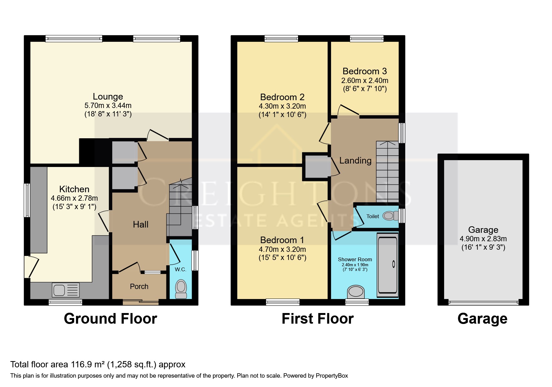 We must inform all prospective purchasers that the measurements are taken by an electronic tape and are provided as a guide only and they should not be used as accurate measurements. We have not tested any mains services, gas or electric appliances, or fixtures and fittings mentioned in these details, therefore, prospective purchasers should satisfy themselves before committing to purchase. Intending purchasers must satisfy themselves by inspection or otherwise to the correctness of the statements contained in these particulars. Creightons Estate Agents (nor any person in their employment) has any authority to make any representation or warranty in relation to the property. The floor plans are not to scale and are intended for use as a guide to the layout of the property only. They should not be used for any other purpose. Similarly, the plans are not designed to represent the actual décor found at the property in respect of flooring, wall coverings or fixtures and fittings.