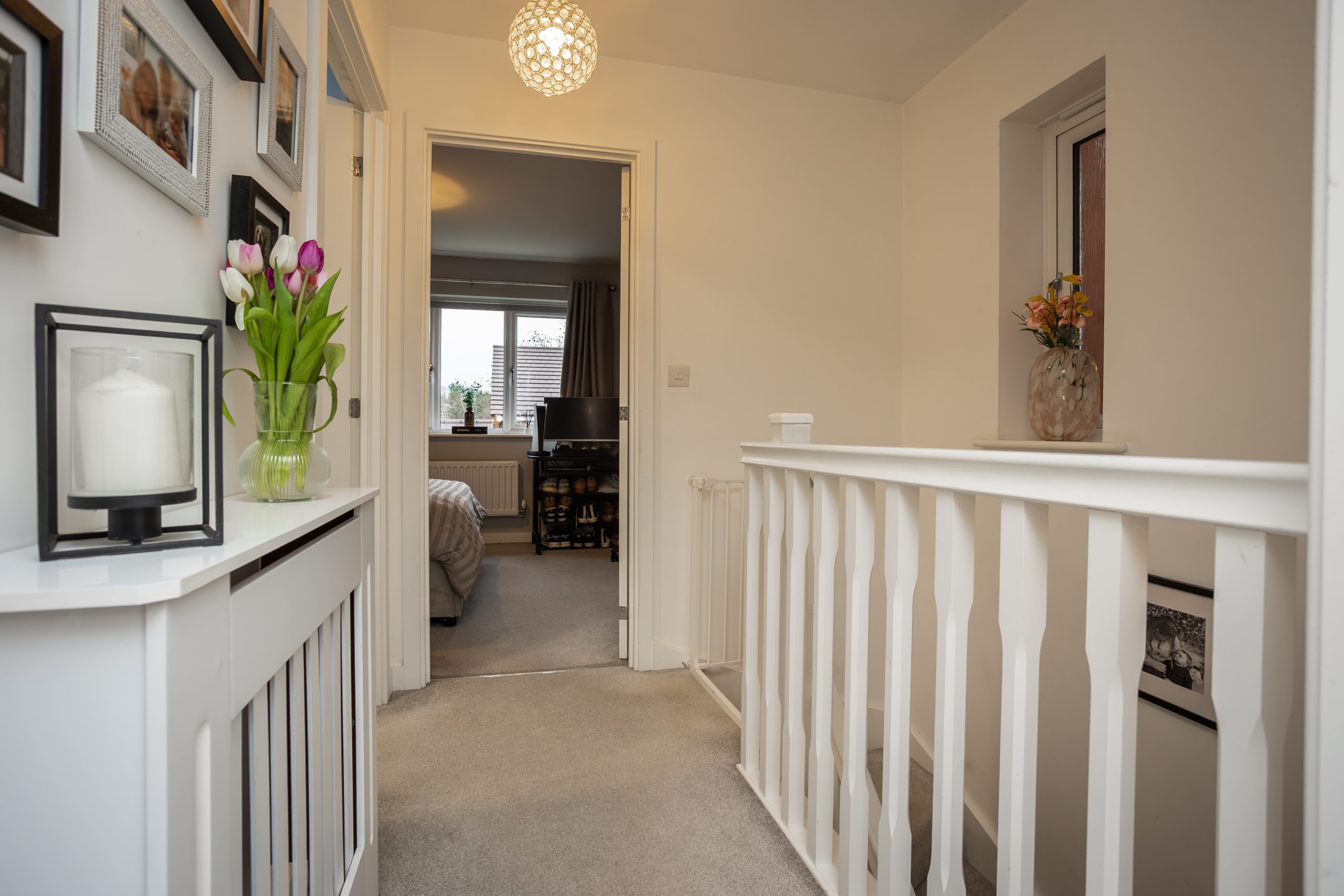 The first floor landing leads to two double bedrooms, the family bathroom and the loft hatch, and benefits from a side elevation window that brings in natural light.