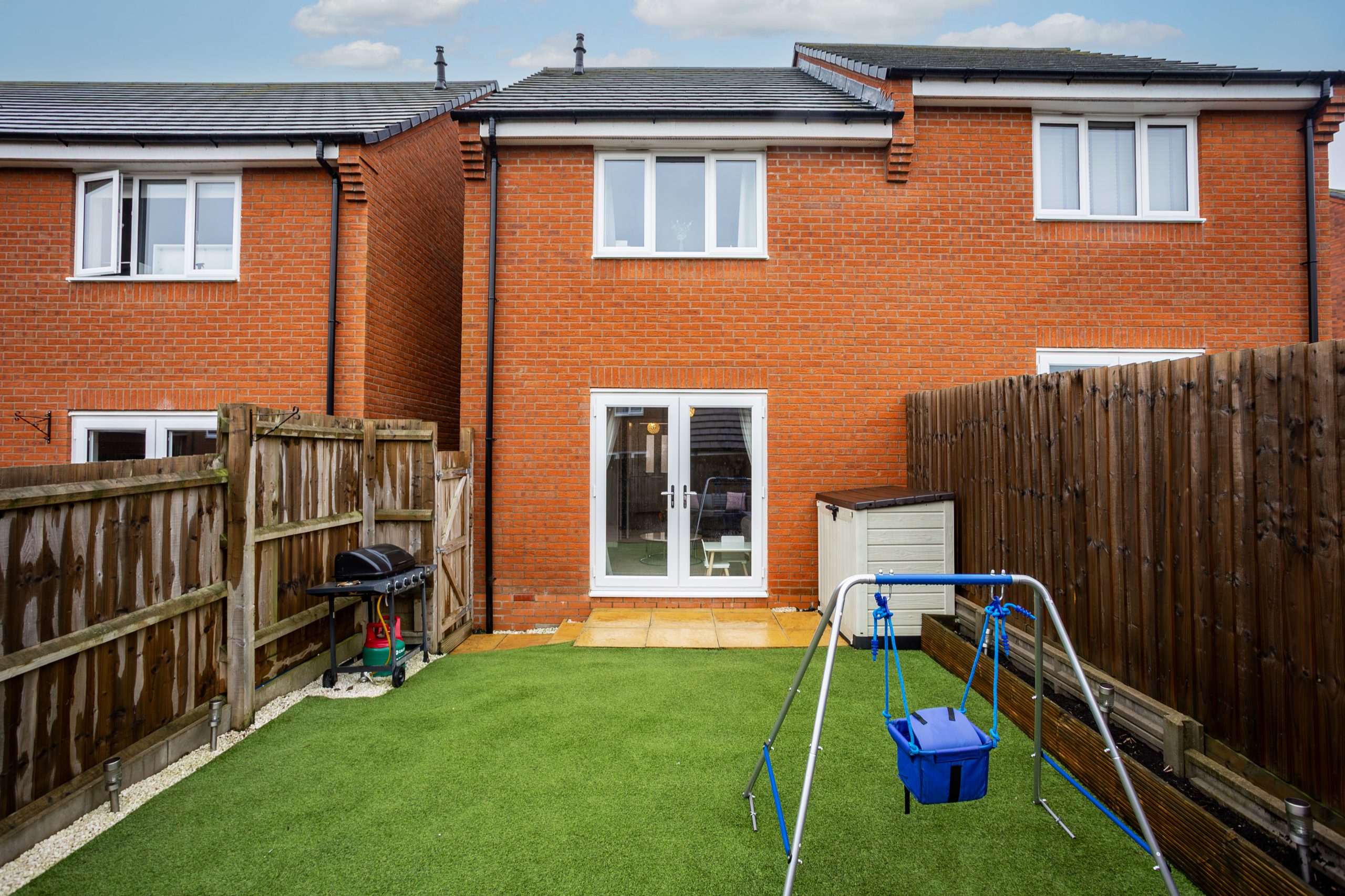The front garden provides off road parking and gated side access to the fully enclosed rear garden. The rear space features low maintenance artificial lawn and a patio area positioned to enjoy the sun, an ideal spot for relaxing, entertaining, or al fresco dining.