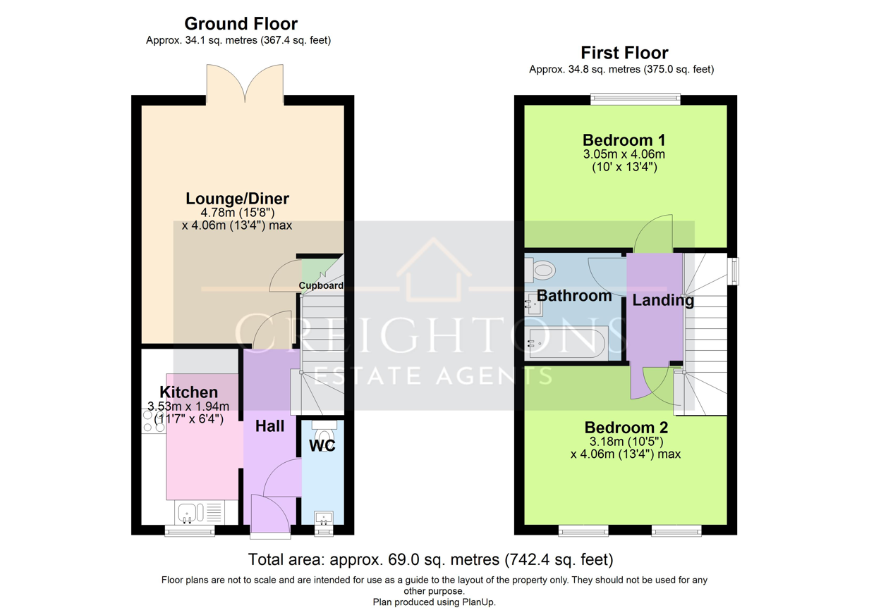 We must inform all prospective purchasers that the measurements are taken by an electronic tape and are provided as a guide only and they should not be used as accurate measurements. We have not evaluated any mains services, gas or electric appliances, or fixtures and fittings mentioned in these details, therefore, prospective purchasers should satisfy themselves before committing to purchase. Intending purchasers must satisfy themselves by inspection or otherwise to the correctness of the statements contained in these particulars. Creightons Estate Agents (nor any person in their employment) has any authority to make any representation or warranty in relation to the property. The floor plans are not to scale and are intended for use as a guide to the layout of the property only. They should not be used for any other purpose. Similarly, the plans are not designed to represent the actual décor found at the property in respect of flooring, wall coverings or fixtures and fittings.