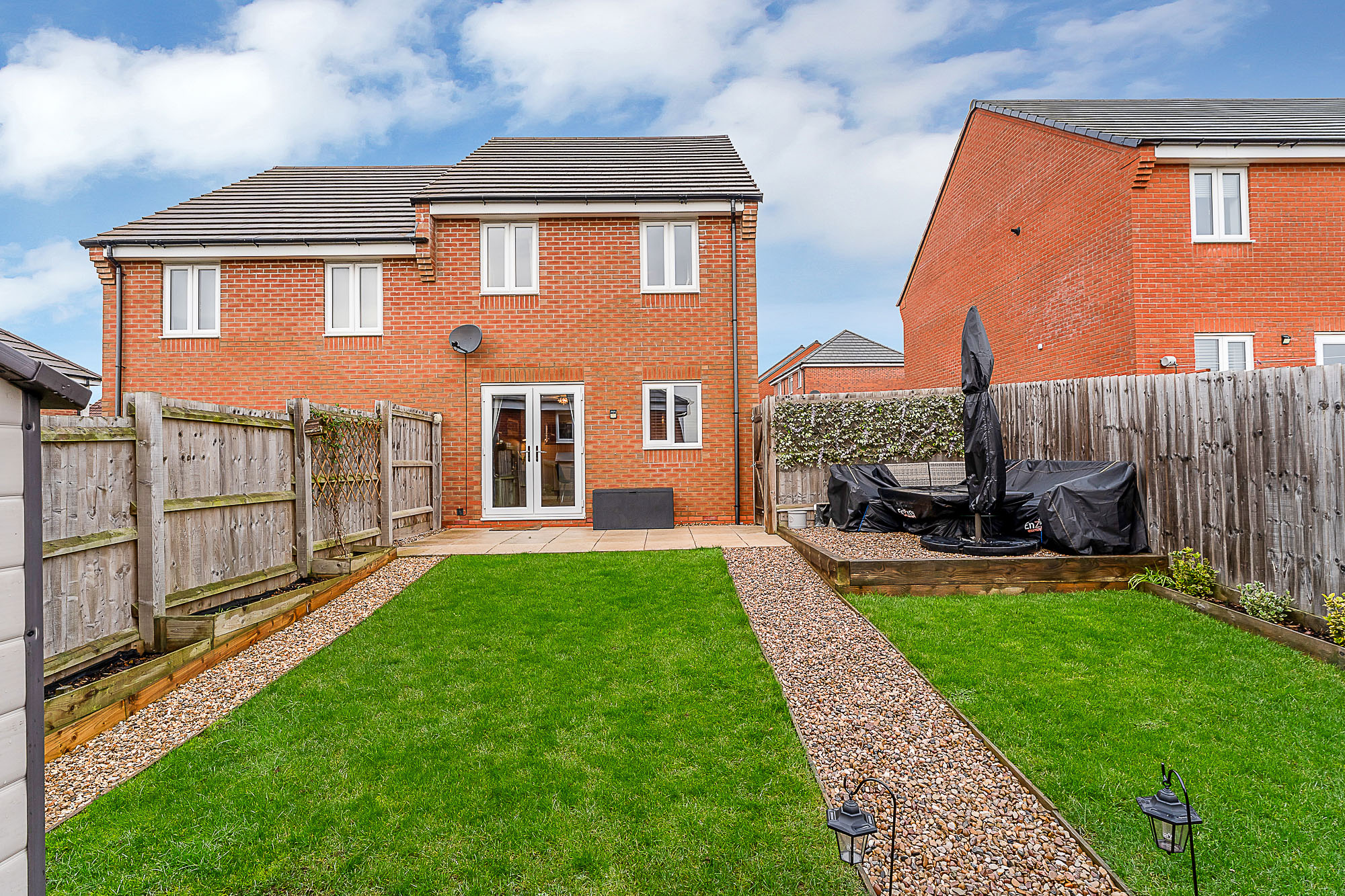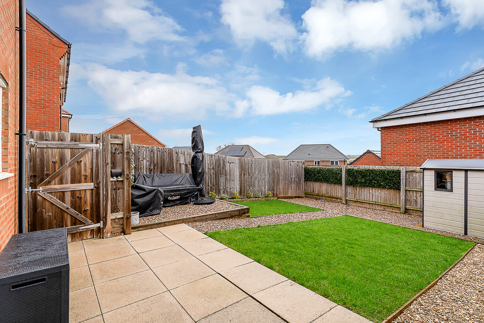 The front garden has been gravelled for low-maintenance appeal and features a driveway providing off-road parking. Gated side access leads to the fully enclosed rear garden, which is mainly laid to lawn and also includes a patio area and stone borders, offering a pleasant outdoor space for relaxation and entertaining.