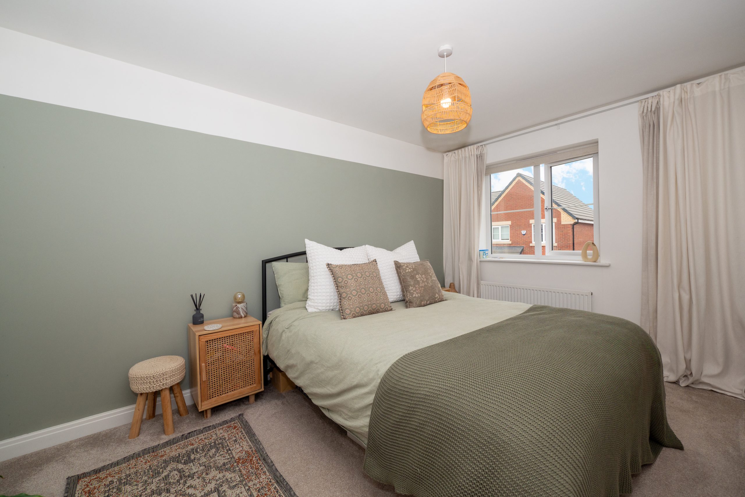 The first-floor landing provides access to three good size bedrooms and family bathroom. Situated at the front of the property, the bathroom features a crisp white suite, including a low-level WC, a sleek hand basin with a built-in vanity unit for added storage, and a bath with a glass screen and overhead shower for convenience. Stylish modern floor and wall tiles enhance the space, complementing the contemporary design, while a heated towel rail adds both practicality and comfort. The master bedroom is positioned at the front of the property, featuring fitted wardrobes for convenient storage and a calming neutral décor that enhances its spacious feel. To the rear, two additional bedrooms offer versatile living options, the second, a well-proportioned double, and the third, currently utilised as a home office. Both rooms are tastefully decorated in soft, neutral tones, creating a warm and inviting atmosphere throughout.