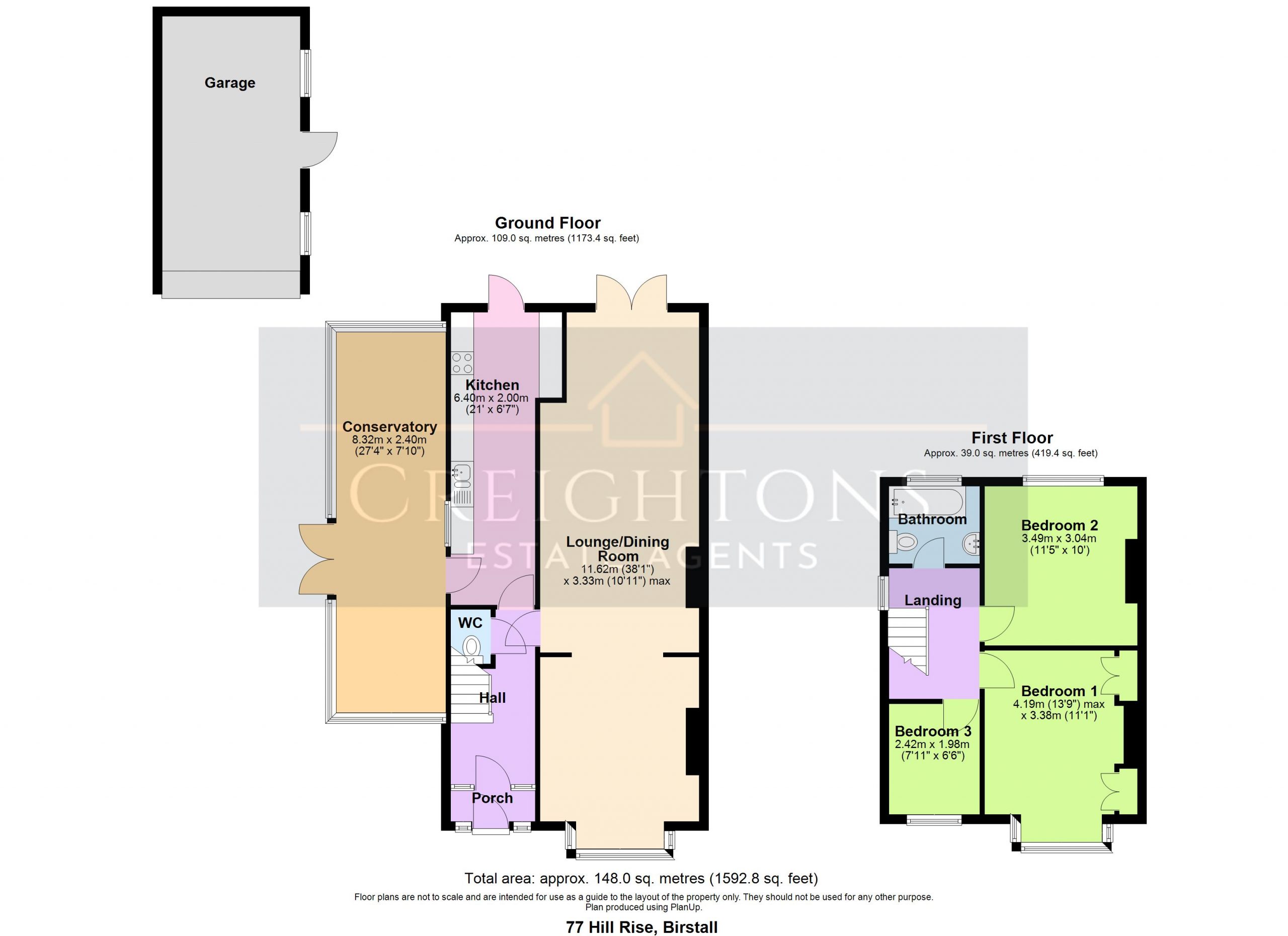 We must inform all prospective purchasers that the measurements are taken by an electronic tape and are provided as a guide only and they should not be used as accurate measurements. We have not tested any mains services, gas or electric appliances, or fixtures and fittings mentioned in these details, therefore, prospective purchasers should satisfy themselves before committing to purchase. Intending purchasers must satisfy themselves by inspection or otherwise to the correctness of the statements contained in these particulars. Creightons Estate Agents (nor any person in their employment) has any authority to make any representation or warranty in relation to the property. The floor plans are not to scale and are intended for use as a guide to the layout of the property only. They should not be used for any other purpose. Similarly, the plans are not designed to represent the actual décor found at the property in respect of flooring, wall coverings or fixtures and fittings.