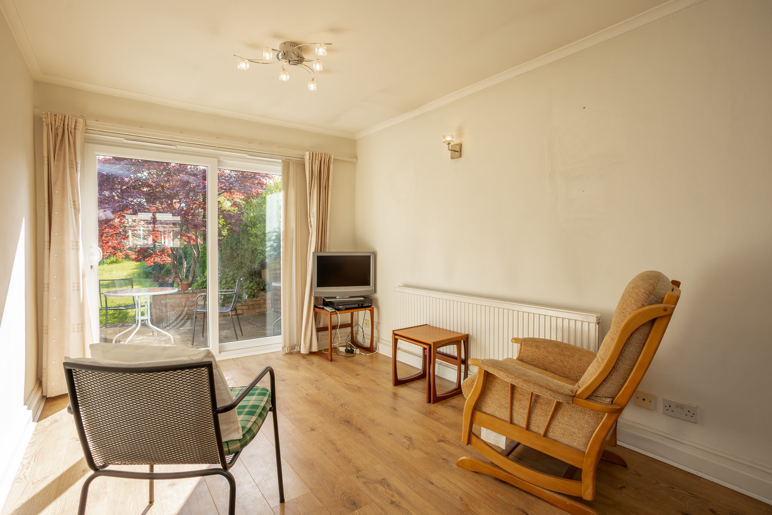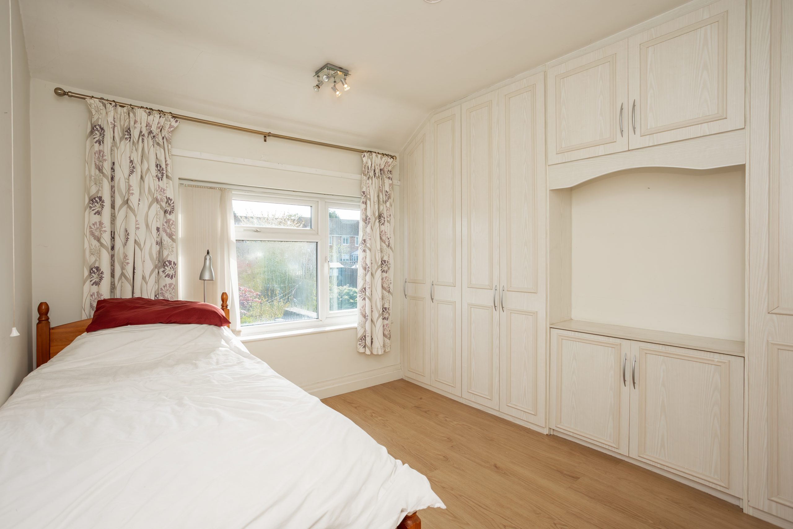 Bedroom two, also located at the rear, enjoys a pleasant outlook through a large window and benefits from built-in wardrobes, providing ample storage.