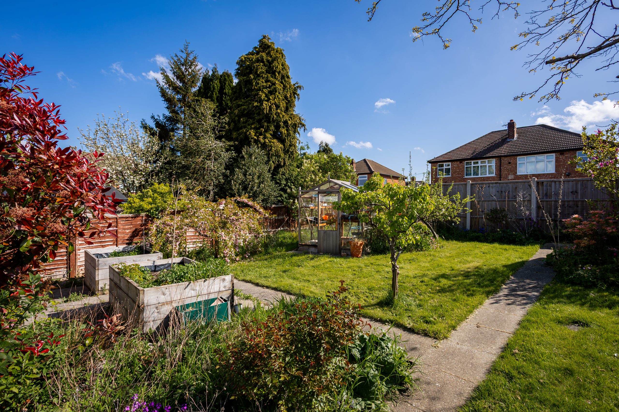 To the rear, the garden is both spacious and well-maintained. A patio area is positioned directly outside the rear doors, ideal for outdoor dining and seating. The remainder of the garden is mainly laid to lawn, with additional space at the rear suitable for growing or cultivation, creating a practical and enjoyable outdoor setting.