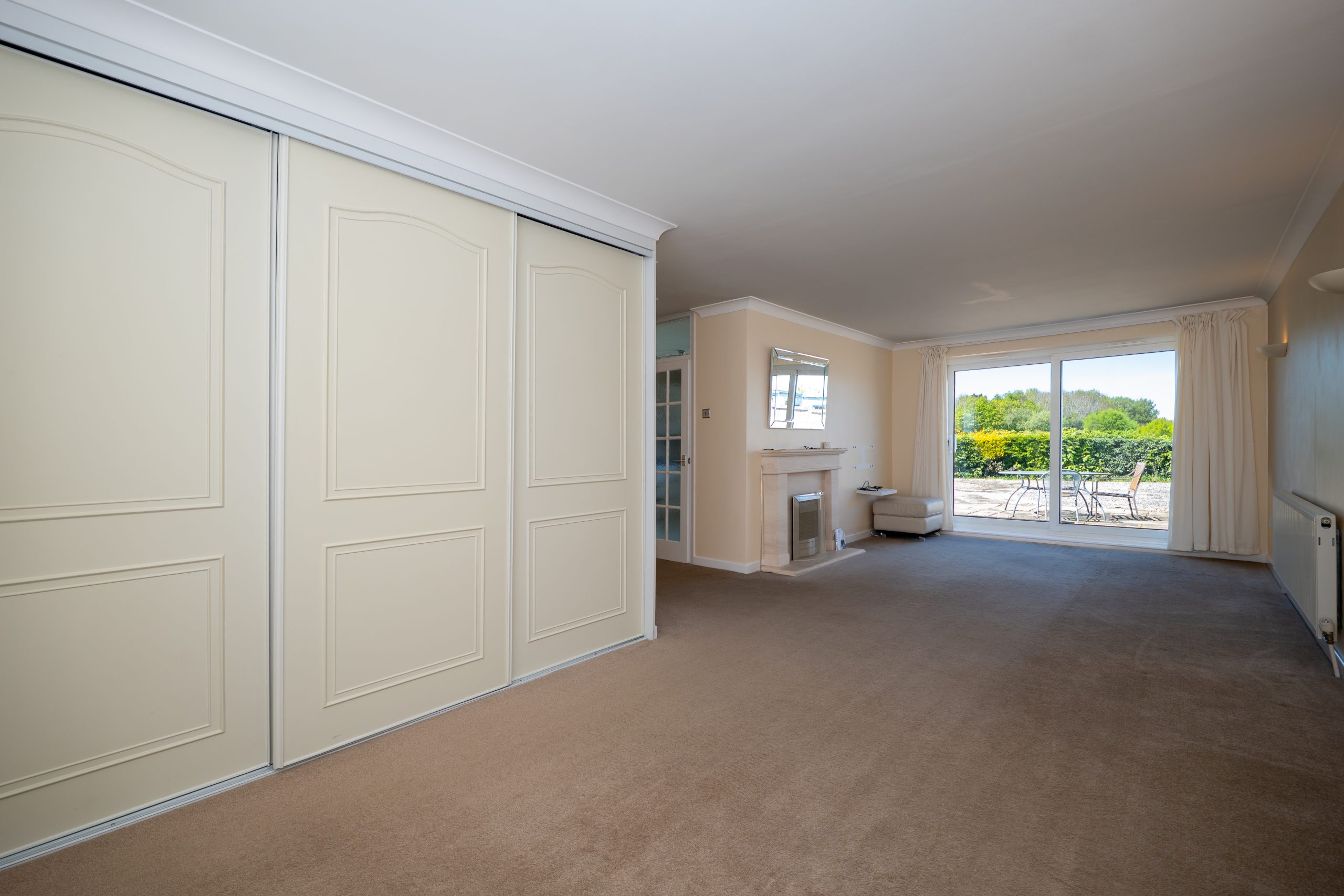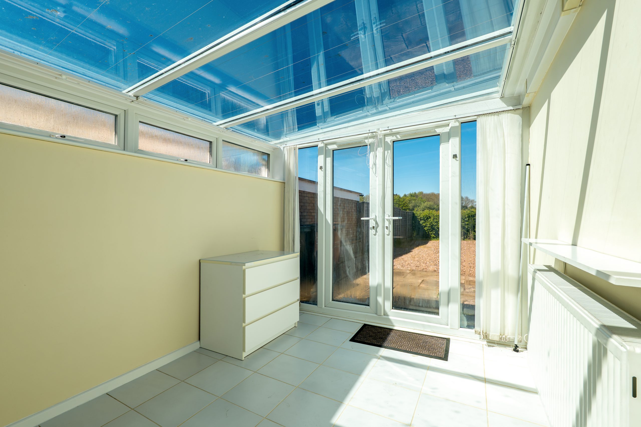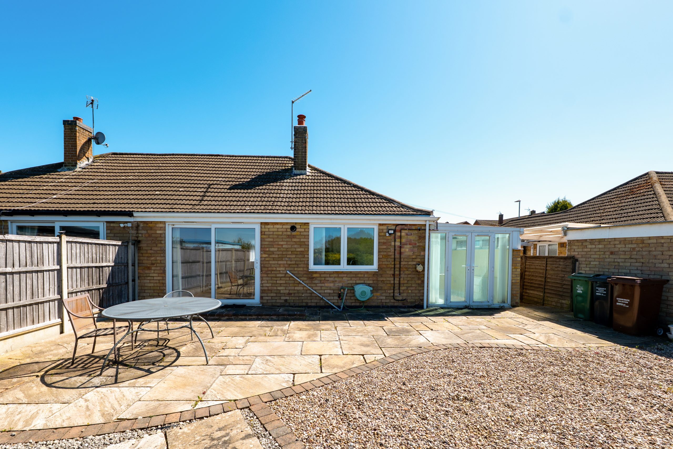 The property is entered through a light, airy and generously sized hallway, setting the tone for the space throughout. From here, there is access to the two well proportioned bedrooms, the large open plan lounge diner, the family bathroom, and the kitchen. The spacious open plan lounge diner enjoys a lovely dual aspect layout, with a front-facing window and sliding patio doors opening directly onto the rear garden. Neutral décor, fitted storage and a feature fireplace with a recently fitted gas fire create a warm and welcoming atmosphere. Bedroom One is a comfortable double room with a front-facing window and built in storage. Bedroom Two, a smaller double but still an excellent guest or second bedroom, includes a fitted wardrobe and a side-facing window. Both rooms are finished in neutral tones, offering a calm and versatile backdrop. The family bathroom features a white suite comprising a bath with hair washing shower attachment, wall mounted hand basin, a bidet, low level WC and a separate shower cubicle, complemented by accessibility features and heated towel radiator. White wall and floor tiles provide a clean, crisp aesthetic, and an obscured side window allows for natural light while maintaining privacy. The kitchen offers a range of white base and wall units with contrasting dark worktops, chrome handles and white tiled flooring. A rear-facing window overlooks the garden, and the kitchen includes an integrated oven, microwave, hob and extractor fan, with space for additional appliances. From here, there is access to the rear conservatory. The conservatory is a bright, airy space with neutral décor and views over the garden, an ideal spot to relax and enjoy the outlook.