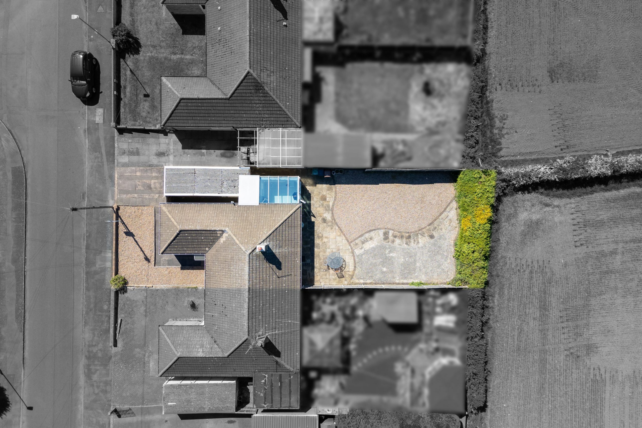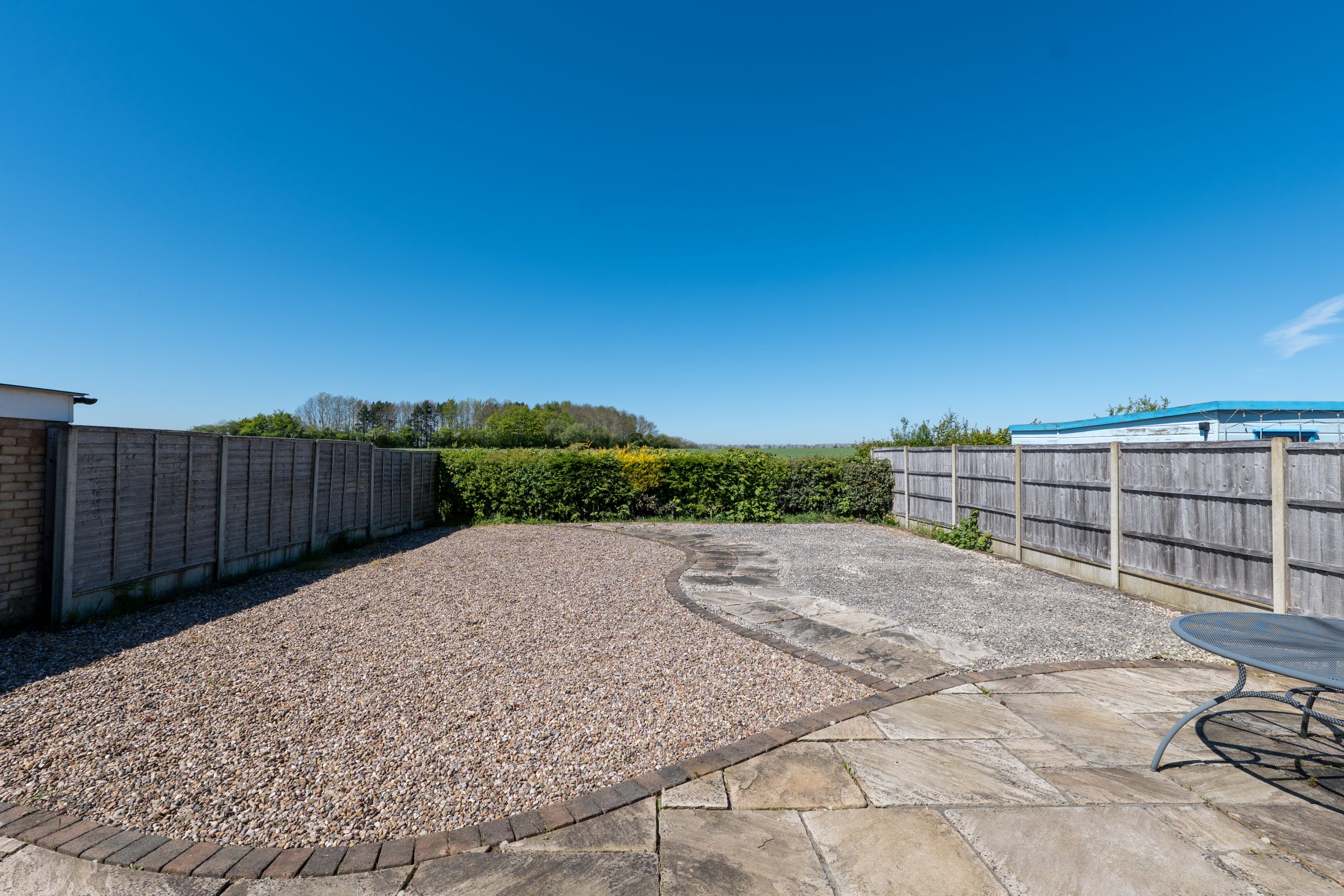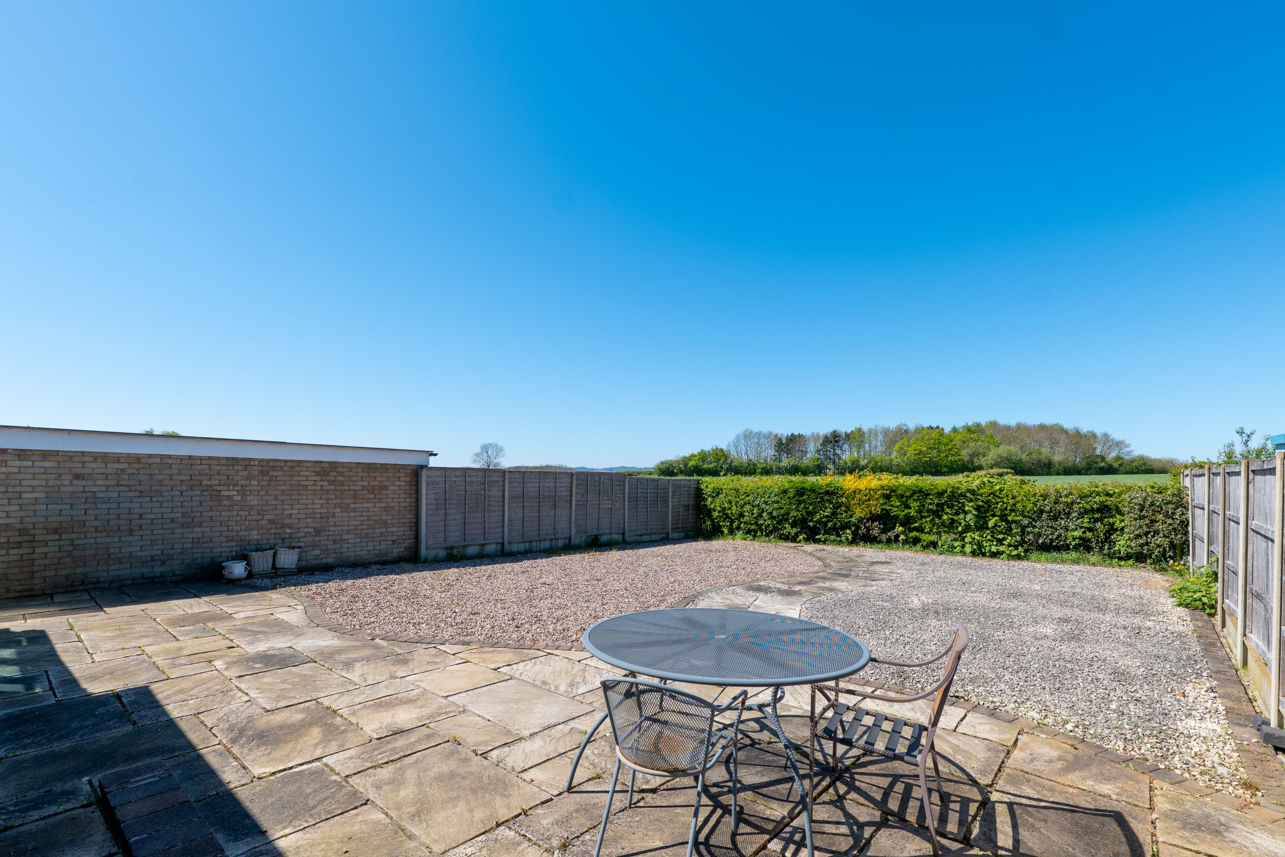 Externally, the property enjoys a low maintenance and easily accessible frontage, complete with off road parking and a single garage equipped with power and lighting, ideal for storage, hobbies or secure parking. There is also gated side access to the generous rear garden, designed with low maintenance living in mind. A large patio area provides the perfect spot for outdoor dining and entertaining, while the remainder is neatly gravelled for year round ease. The garden is fully enclosed, with fencing to two sides and a mature hedge to the rear, creating a natural boundary and enhancing the peaceful field backdrop beyond.