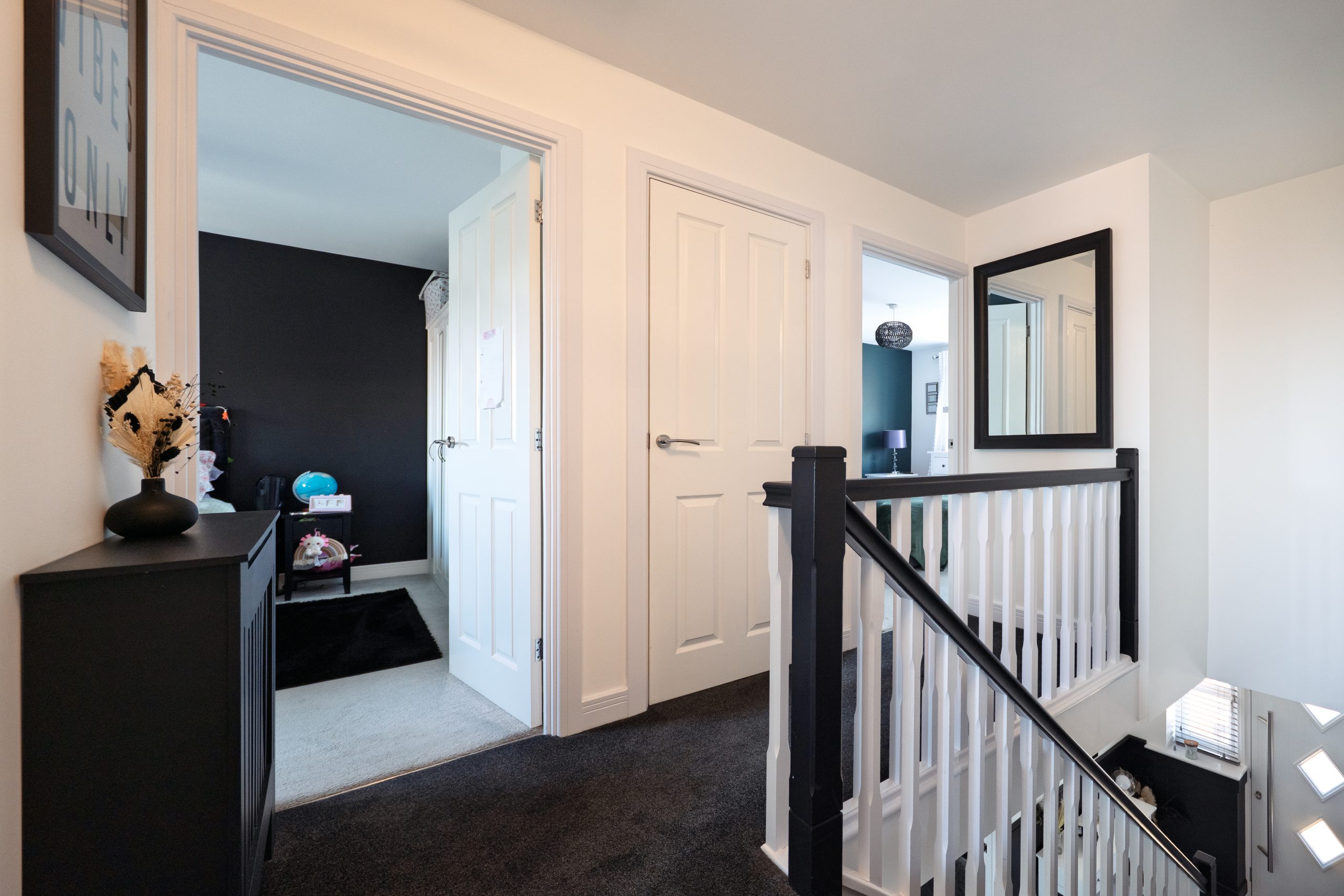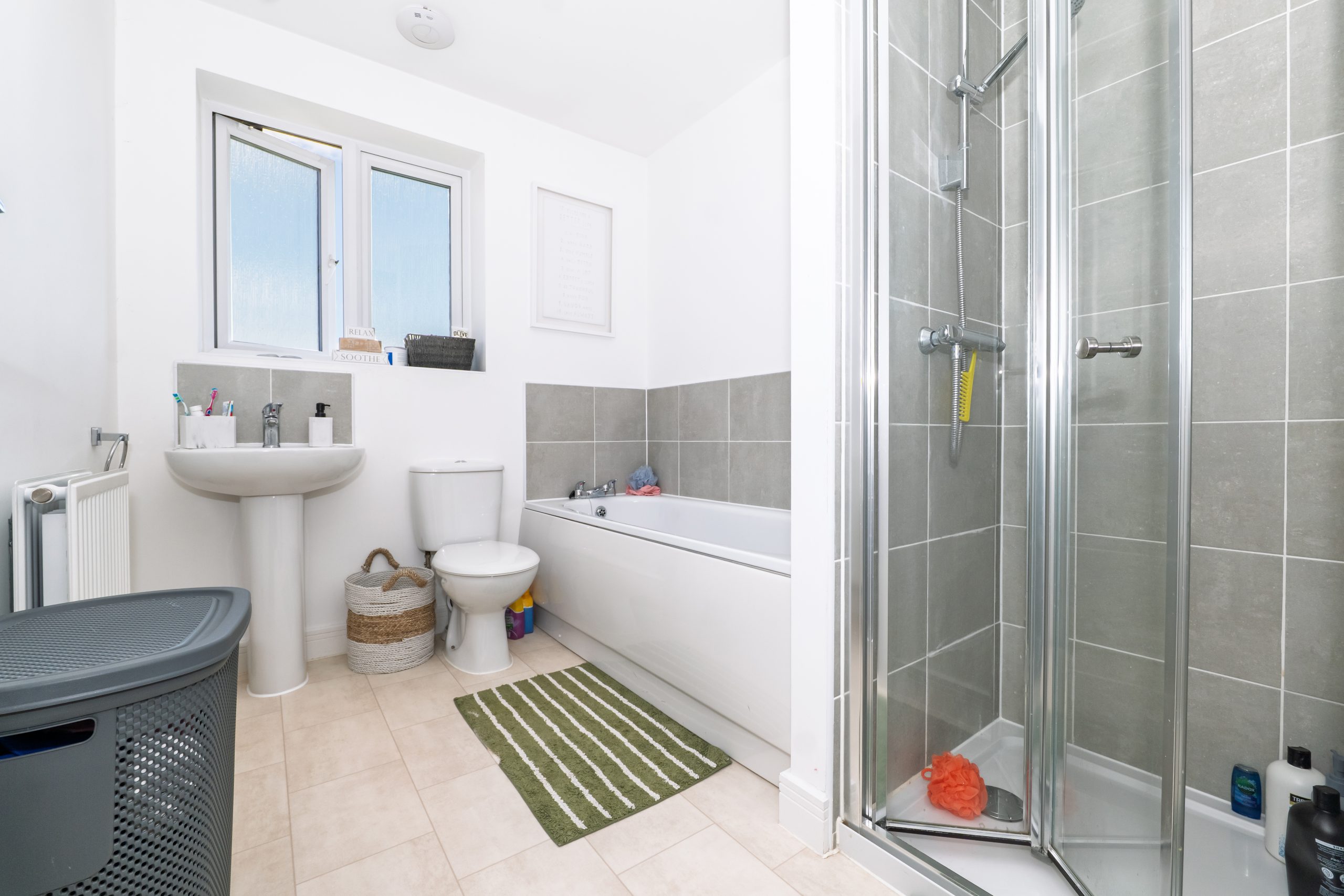 The first floor offers four generously proportioned double bedrooms; all tastefully finished in neutral tones to suit a variety of styles and needs. The primary bedroom benefits from sleek fitted wardrobes and a modern ensuite shower room, creating a private and stylish retreat. The remaining three bedrooms are equally well-sized, offering flexible options for family members, guests, or home working setups. The family bathroom is beautifully appointed with a contemporary design, featuring a separate bath and walk-in shower for maximum comfort and practicality.