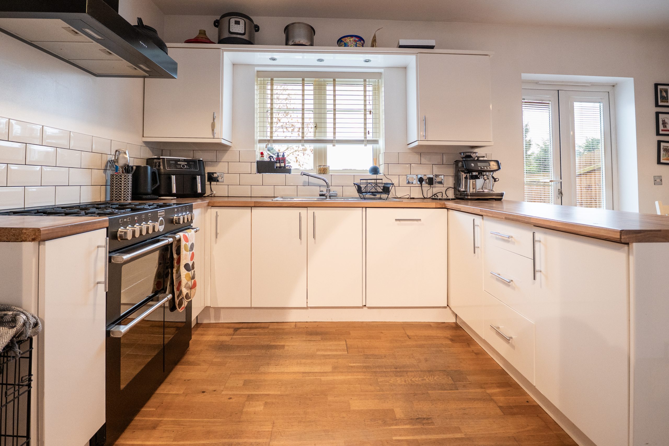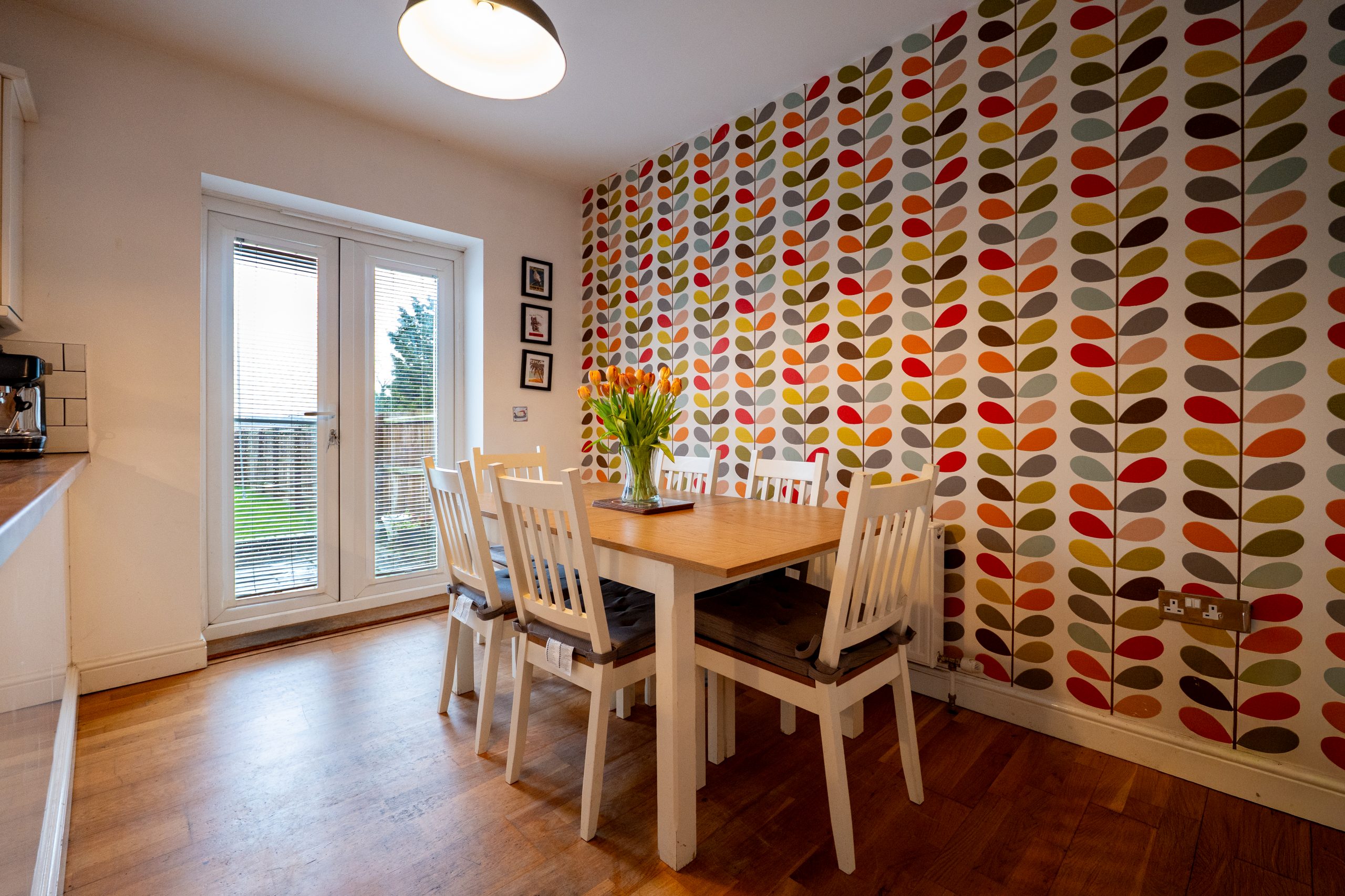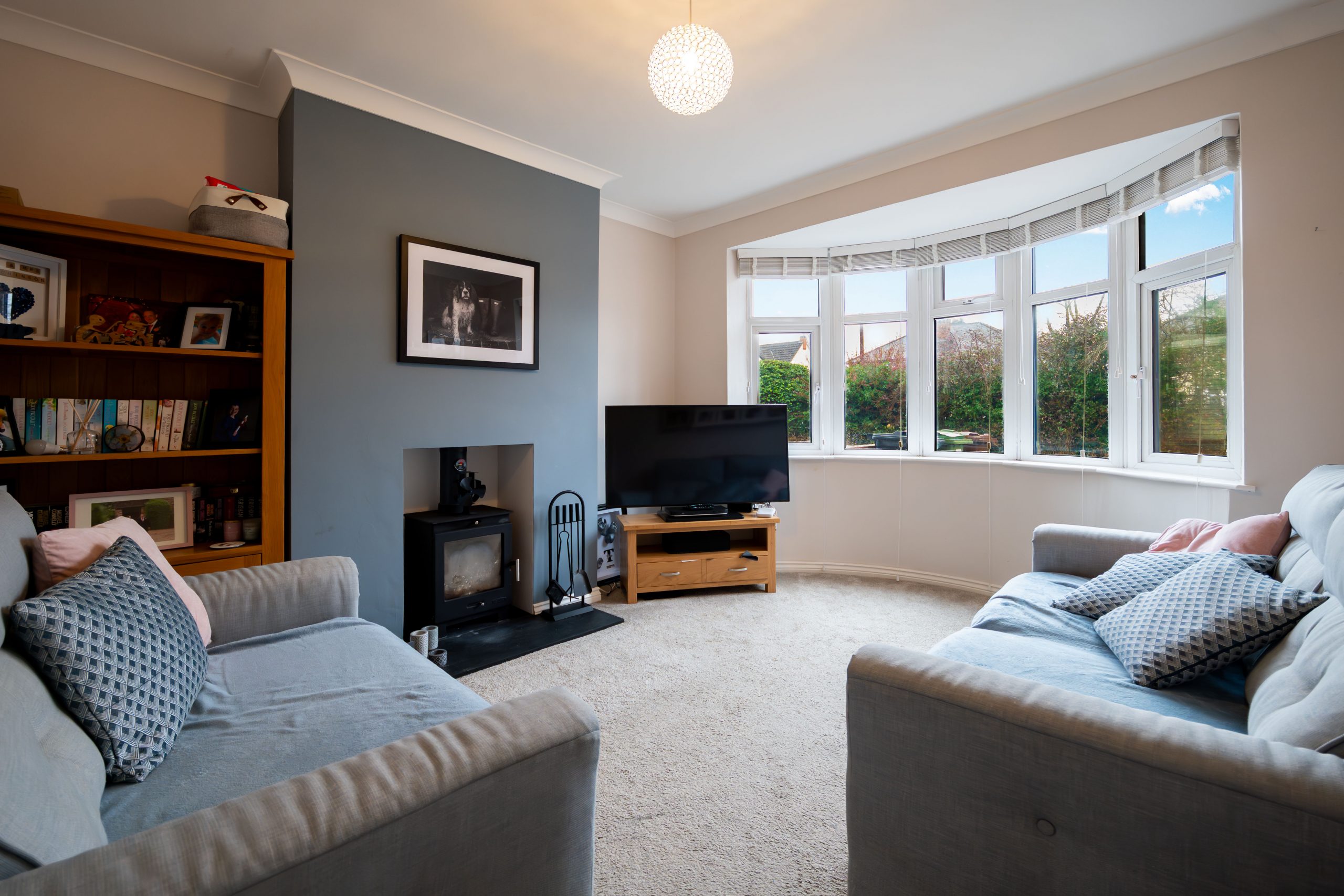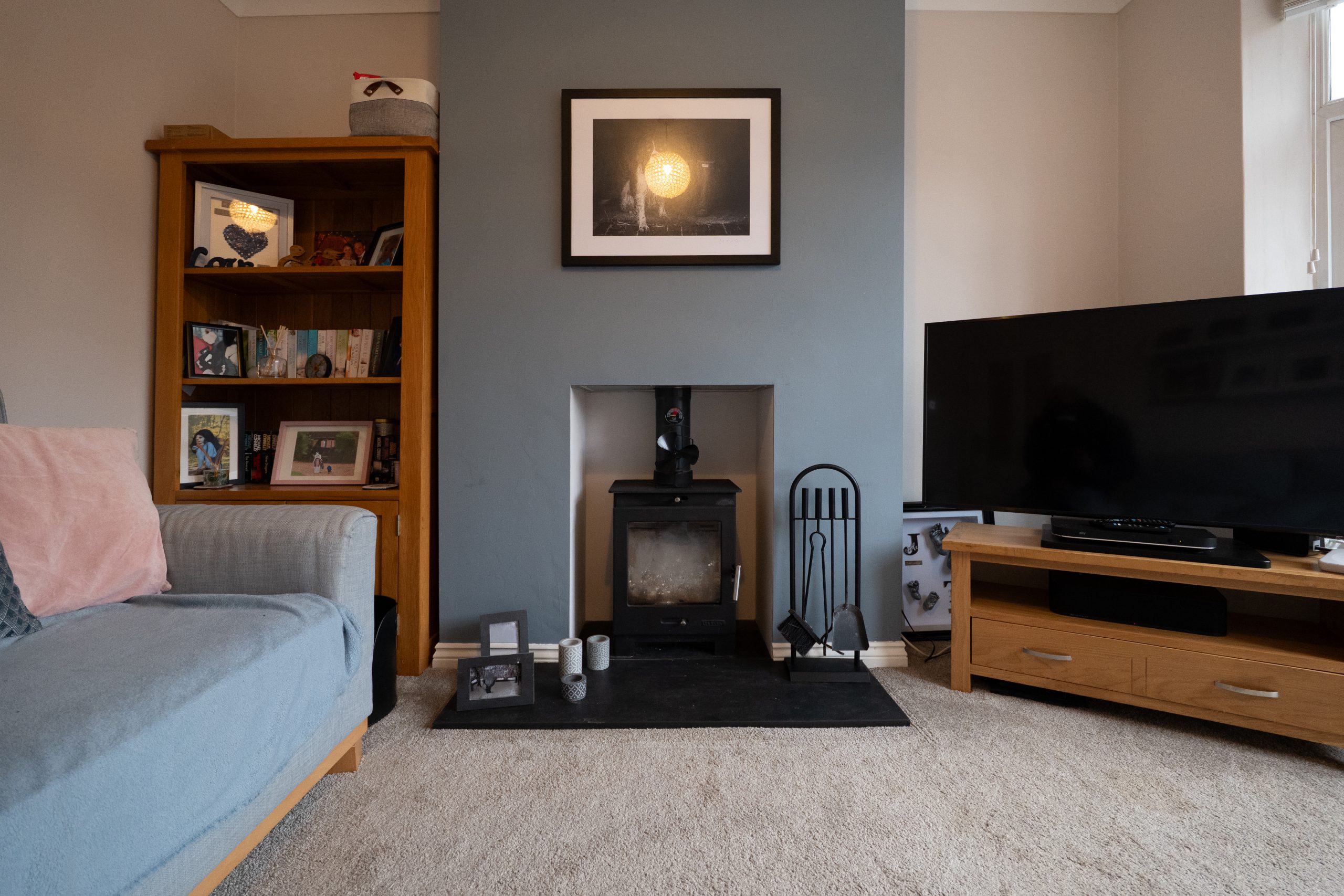 To the front of the property, the lounge provides a cosy and welcoming space, centred around a log-burning stove and complemented by retained original details that add warmth and charm. Practical ground floor accommodation includes a separate utility room and a downstairs WC, both highly desirable features for modern family living.