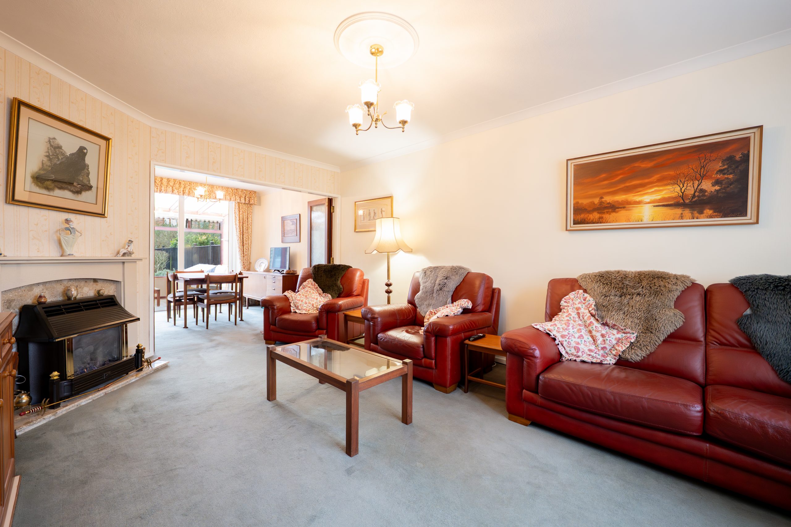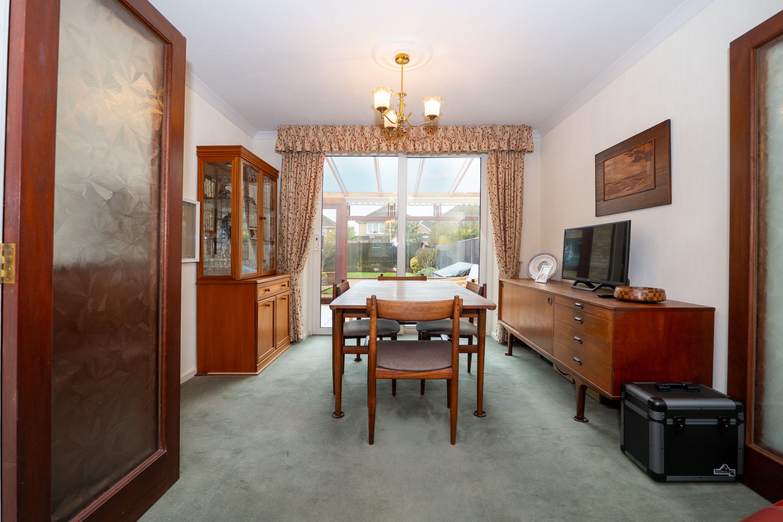 The generous living area features coving, a fireplace and a large front window that fills the room with natural light. Double bi fold doors connect this space to the rear dining area, allowing it to function as an open plan layout or be closed off for separate use. The dining area also includes coving and patio doors that open into the conservatory/garden room. This bright and airy additional reception space enjoys lovely views over the beautifully manicured rear garden, with a tiled floor that makes indoor–outdoor entertaining effortless.