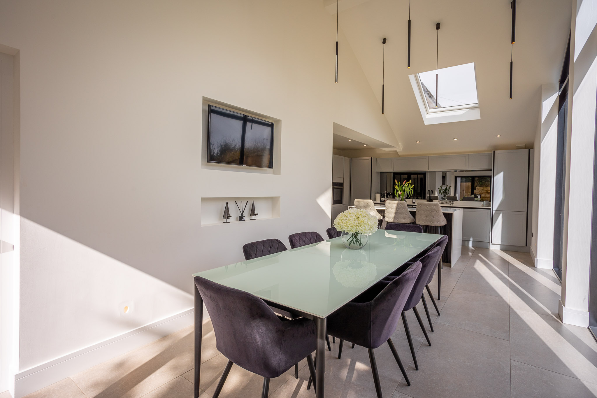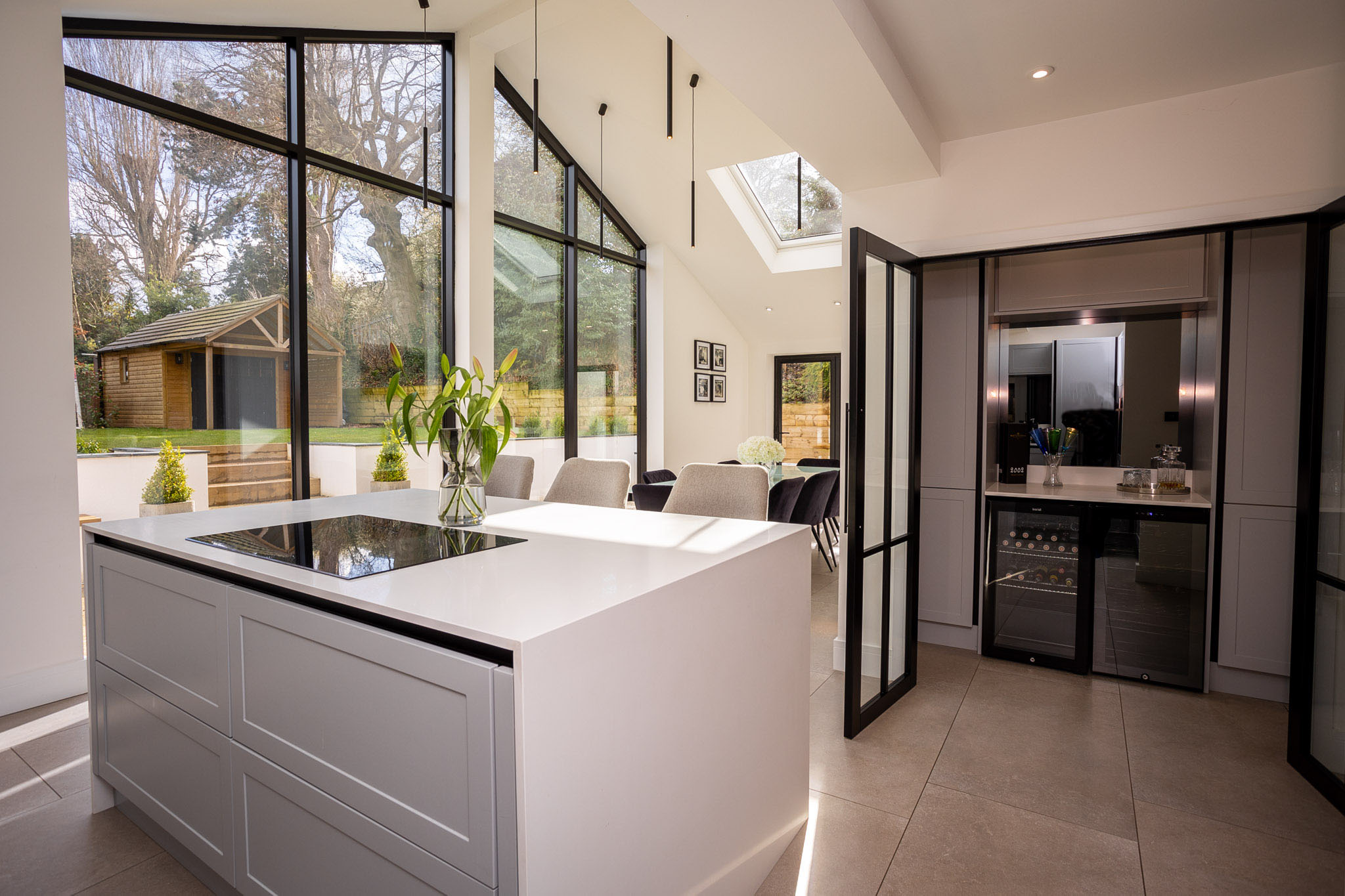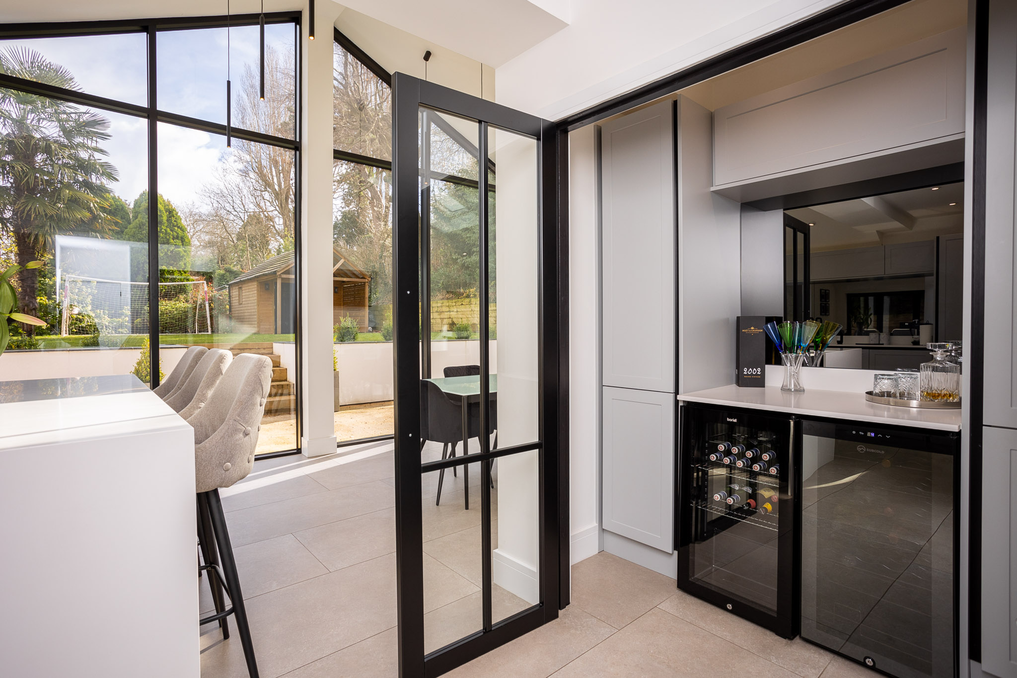 - Stunning 29’ foot open plan kitchen and dining space with bespoke built in champagne bar