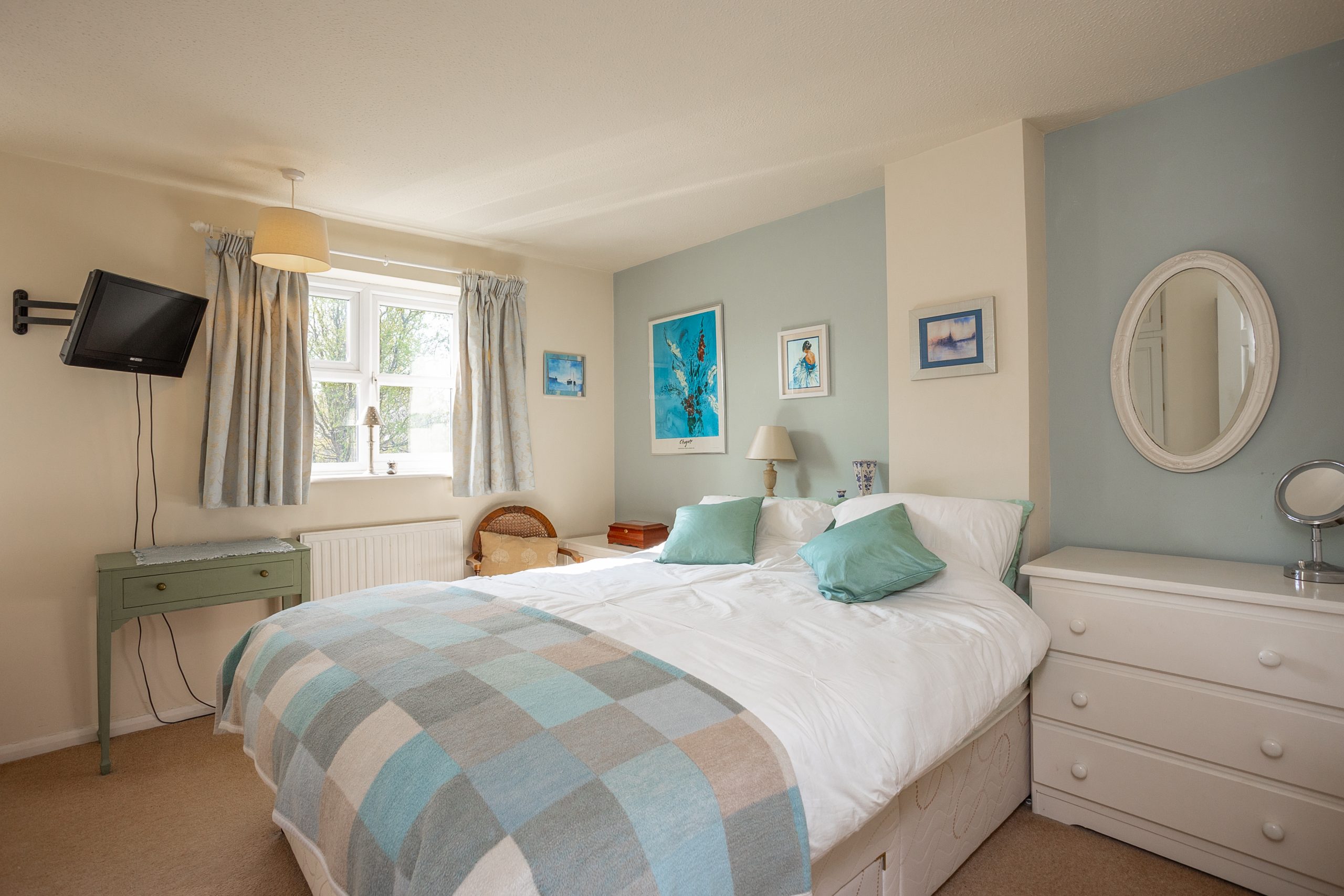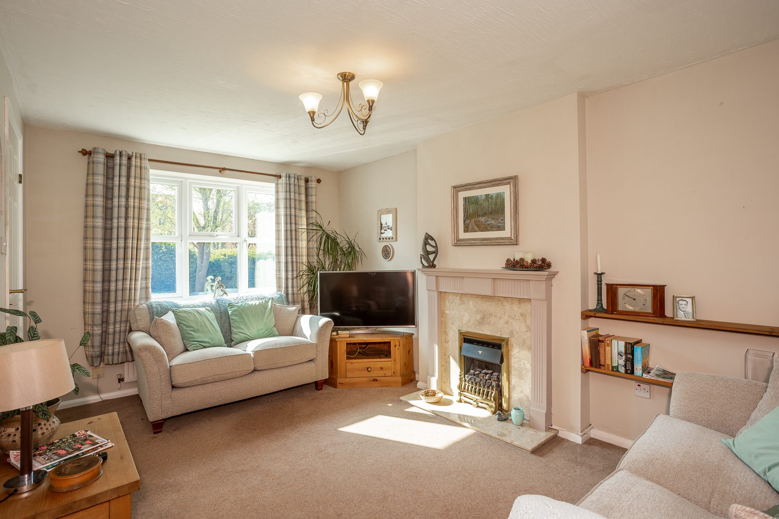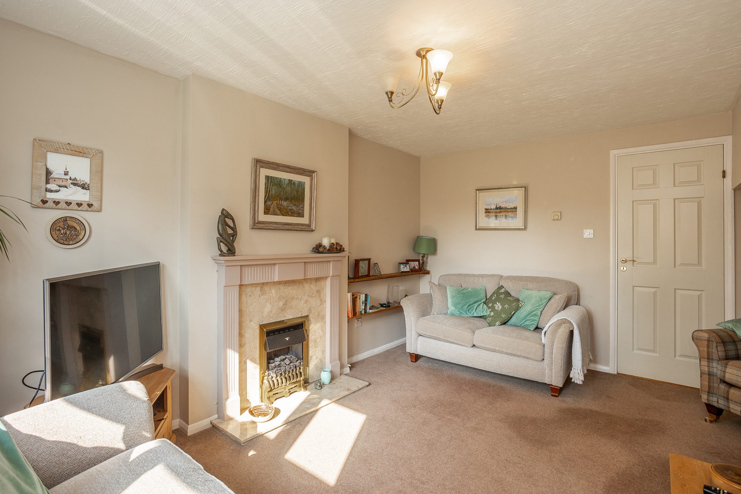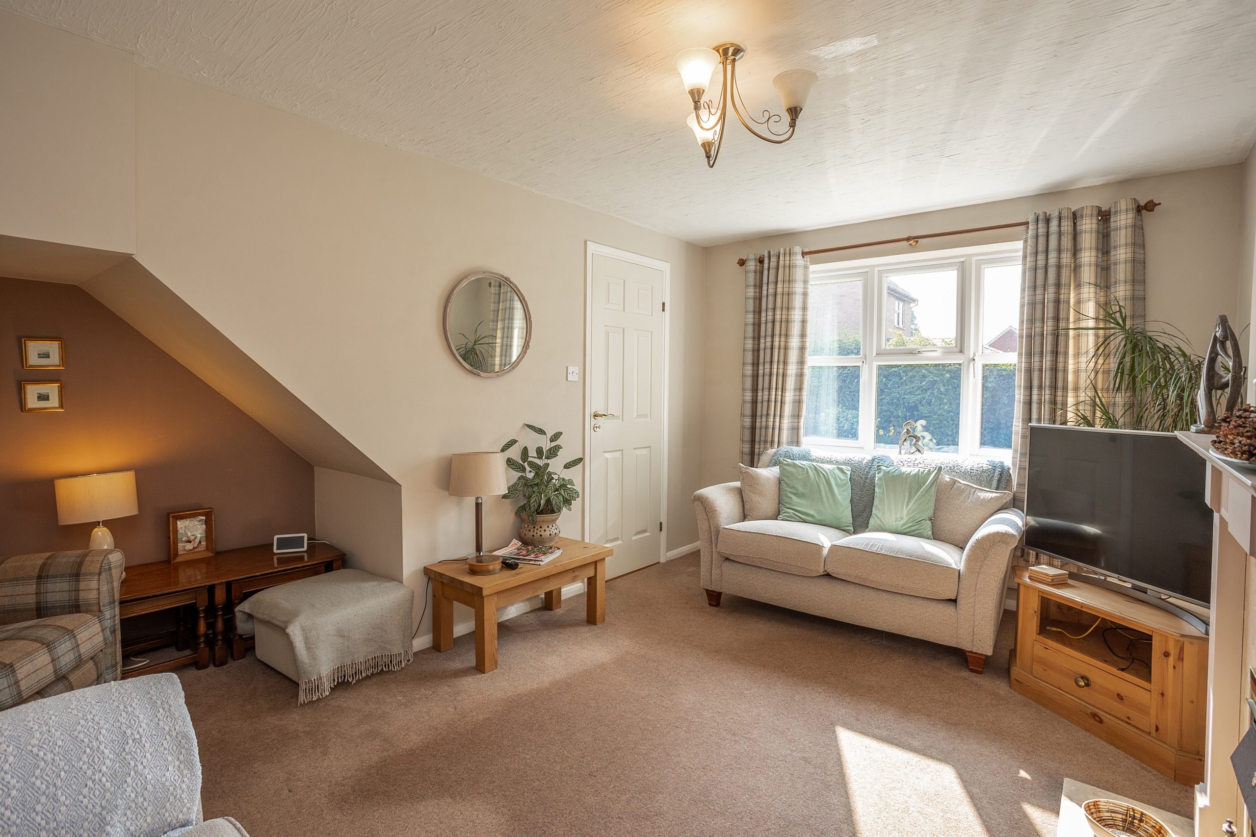The driveway is located alongside the property, offering off-road parking for two vehicles. The garden is predominantly laid to lawn, providing an ideal space to unwind in the sun.