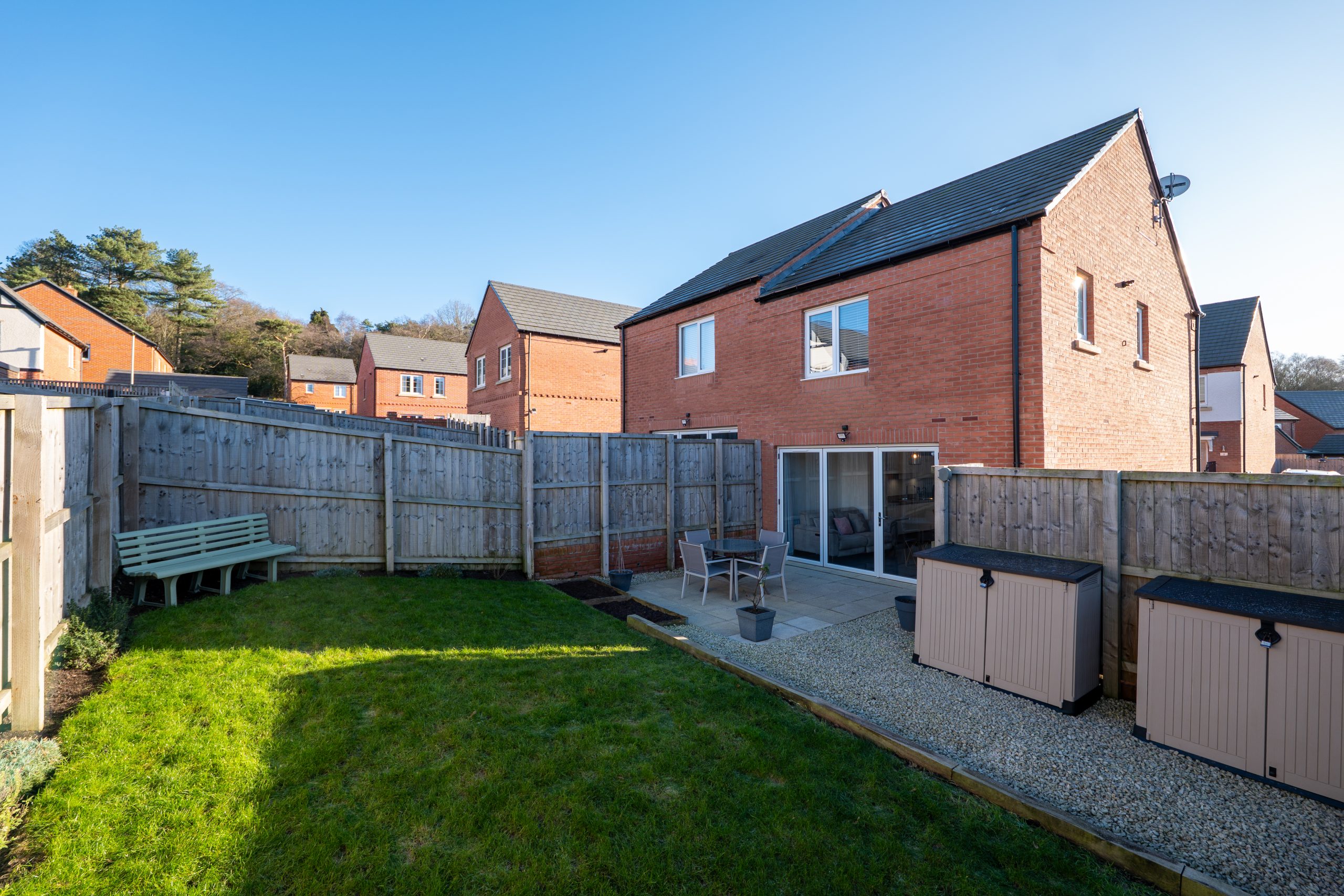 The living area provides space for both dining and lounging, with bi-fold doors opening onto the rear garden, allowing for excellent natural light. There is also useful understairs storage with space for a washer/dryer or pantry. External plug sockets are located in the garden beside the rear doors.