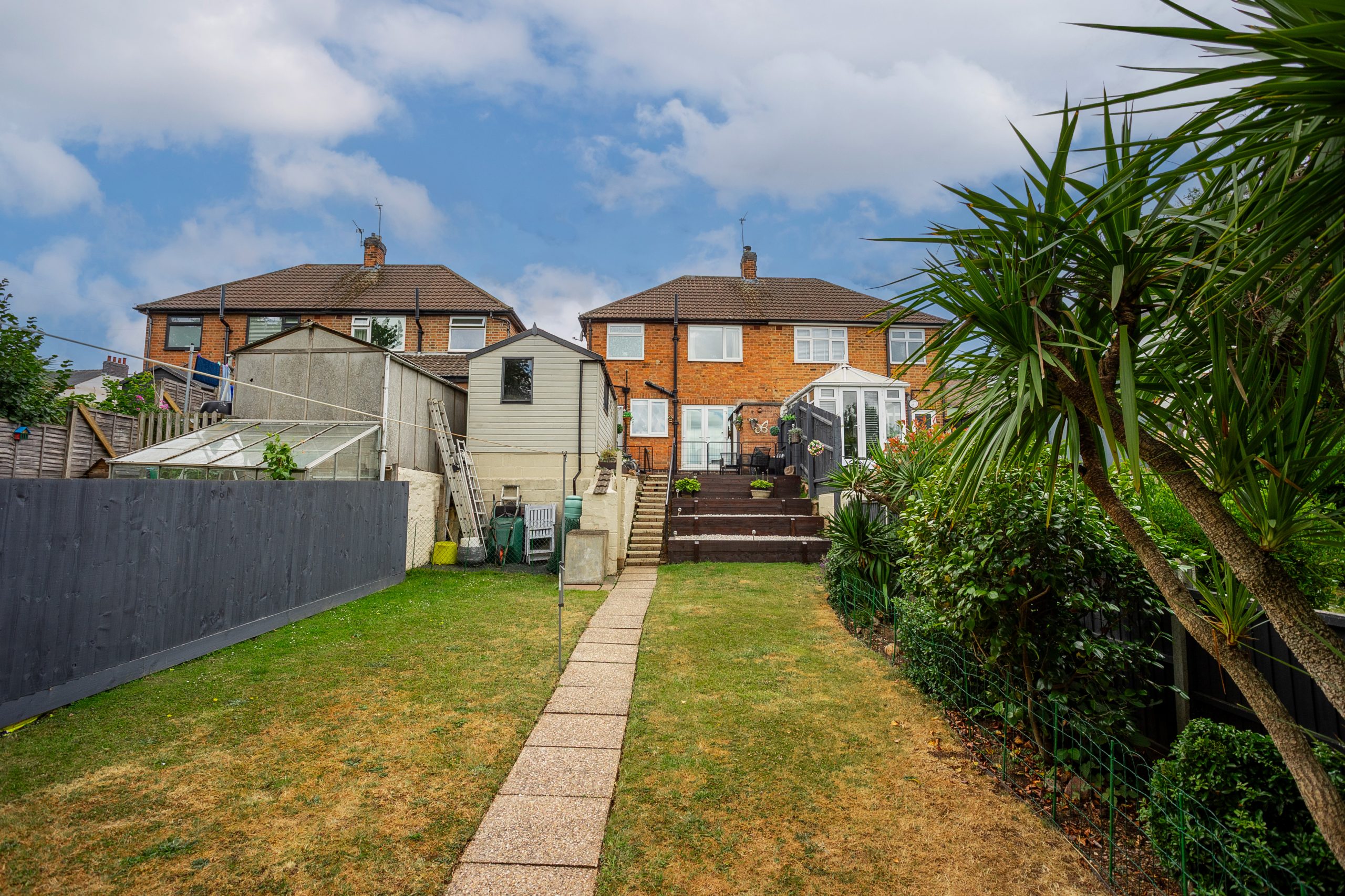 The driveway, situated at the front of the property, provides parking space for a few vehicles and access is available to the single garage. The spacious, tiered rear garden is lawned, featuring gated side access and a patio area.