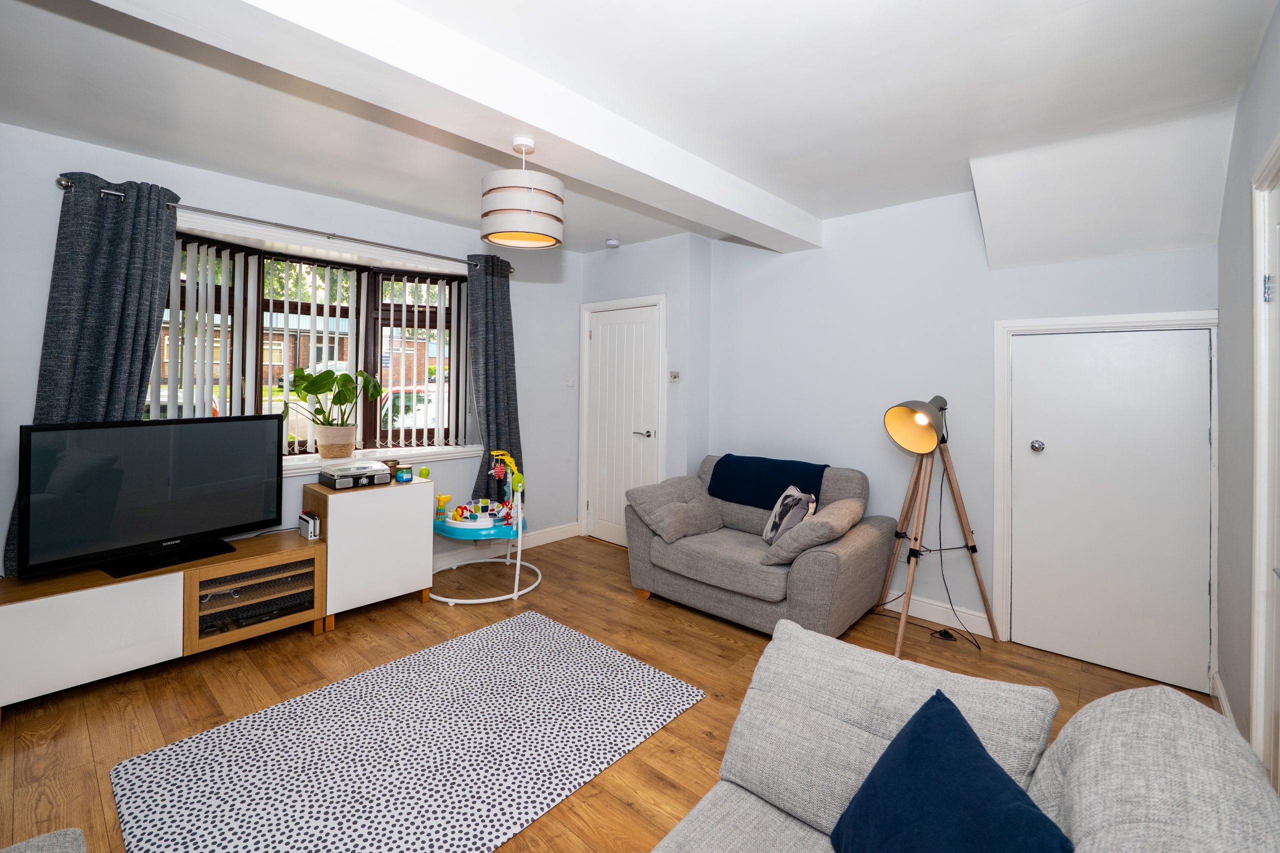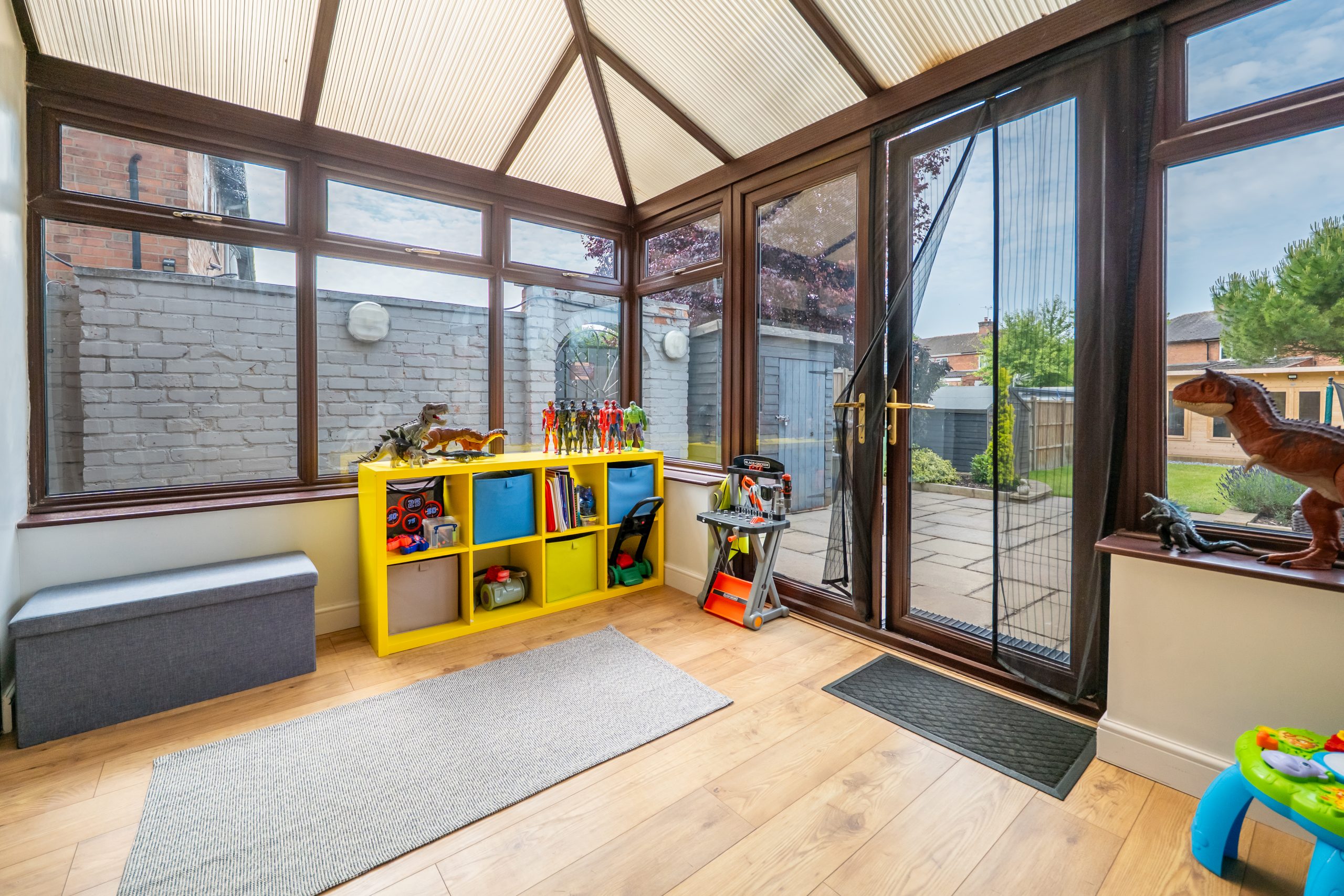 Upon entering the property via the charming canopied, newly fitted, composite front door, you step into a welcoming hallway, complete with a radiator, stairs ascending to the first floor, and a doorway leading into the spacious lounge. This inviting reception area features a large UPVC bay window that offers pleasant views of the front of the property, a useful understairs storage space, and elegant wood flooring, adding warmth and character. From here, a doorway leads into the stylish open-plan dining kitchen, thoughtfully designed with a range of shaker-style base and wall units, complemented by a wood-effect worktop and tiled splashback. The space is further enhanced by laminate flooring, an integrated oven, and ample room for additional appliances. The kitchen also provides access to the brick-based conservatory, a delightful spot to enjoy views of the beautifully manicured rear garden. Additionally, the property benefits from a practical utility area, featuring a lovely, tiled floor and space for appliances, as well as housing the home's boiler. Completing the ground floor is a convenient downstairs WC, fitted with a modern white suite, a vanity unit hand basin, and stylish tiled walls.