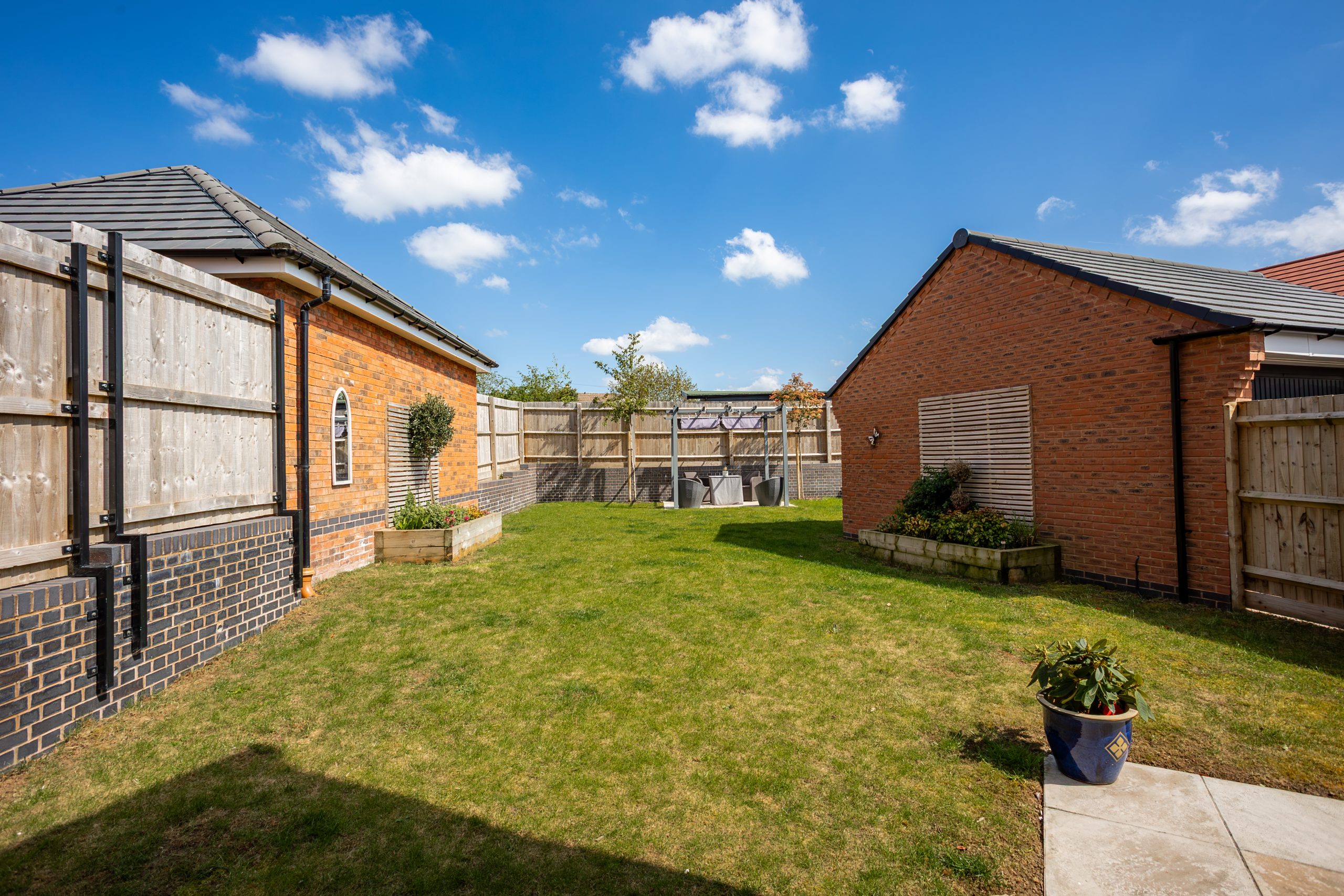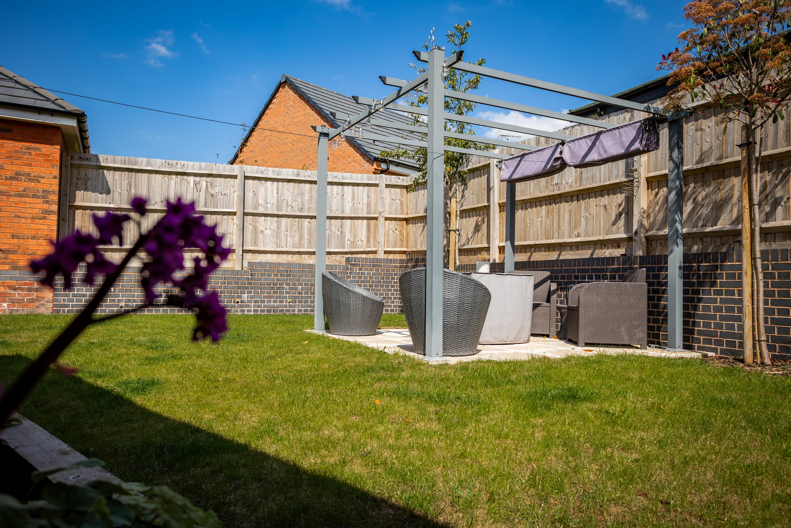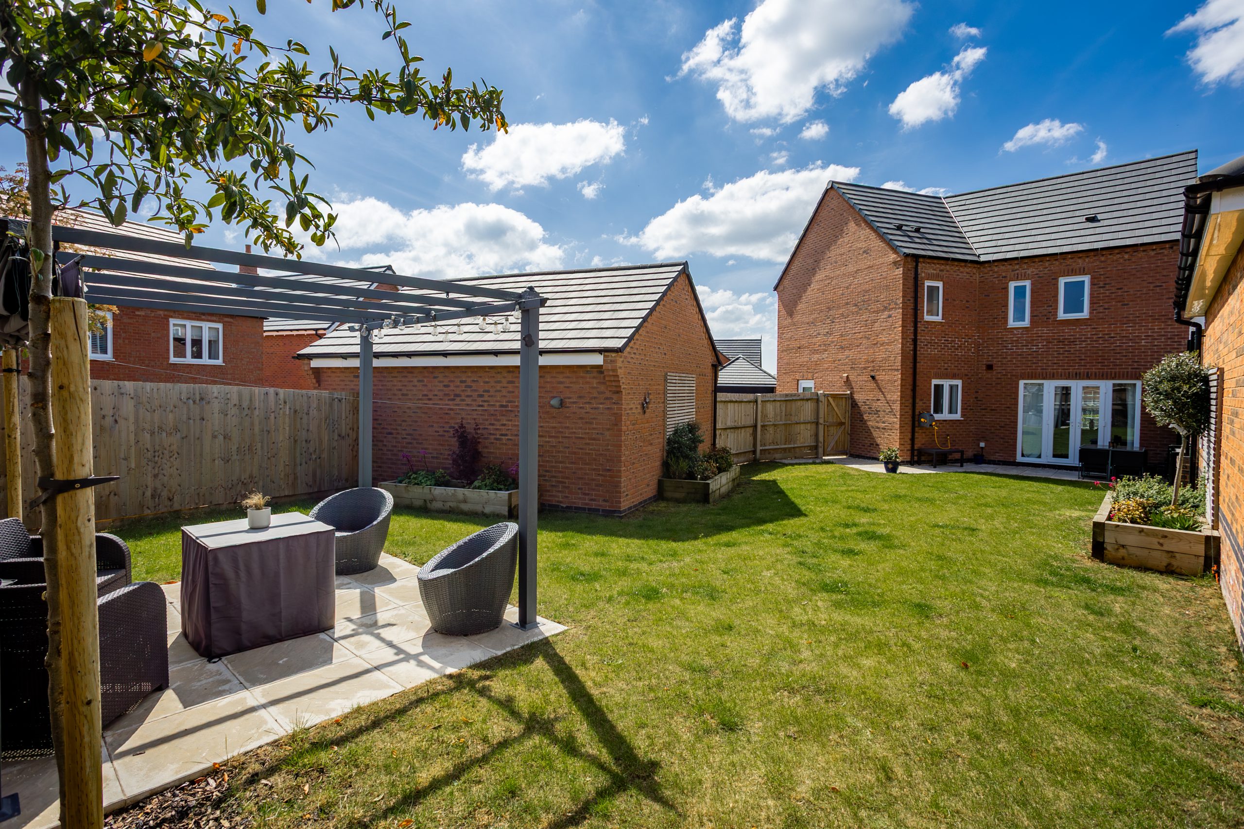 The rear garden is mainly laid to lawn and offers a lovely, private outdoor space. It includes a patio area ideal for seating or dining, a charming gazebo, raised flower beds, and is fully enclosed and non overlooked, perfect for relaxation or entertaining.