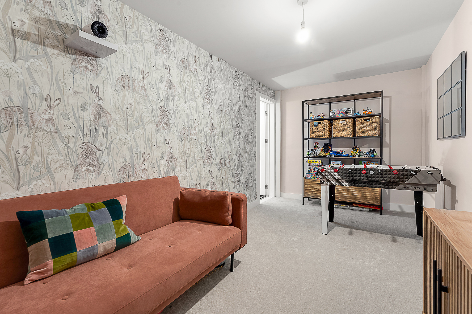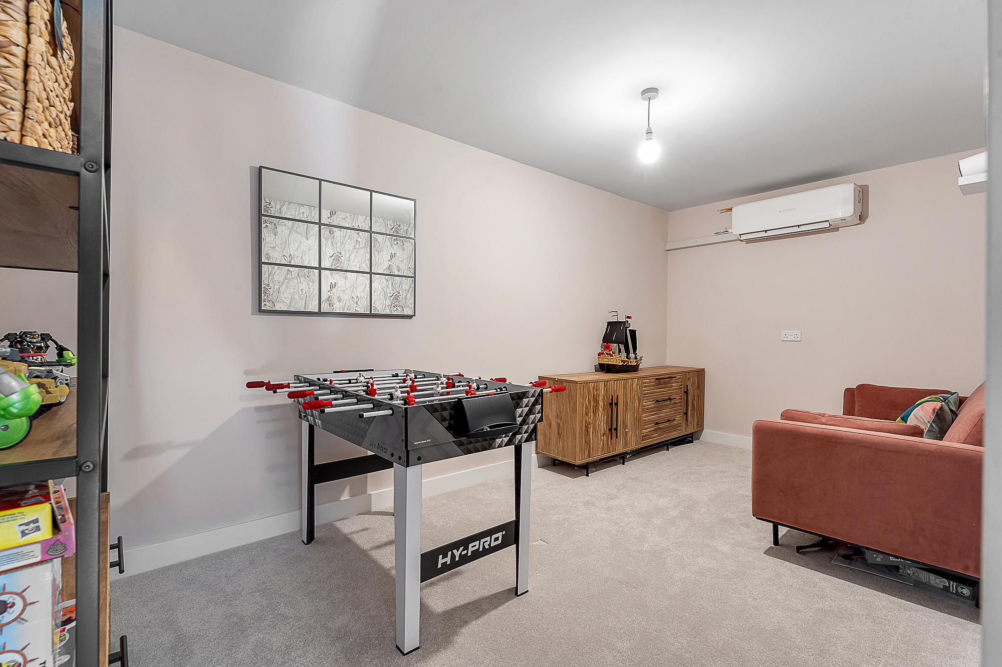 The former garage has been converted internally and is currently used as a playroom/office, offering excellent flexibility for a variety of needs. If preferred, it could be reinstated as a garage by the new owner.