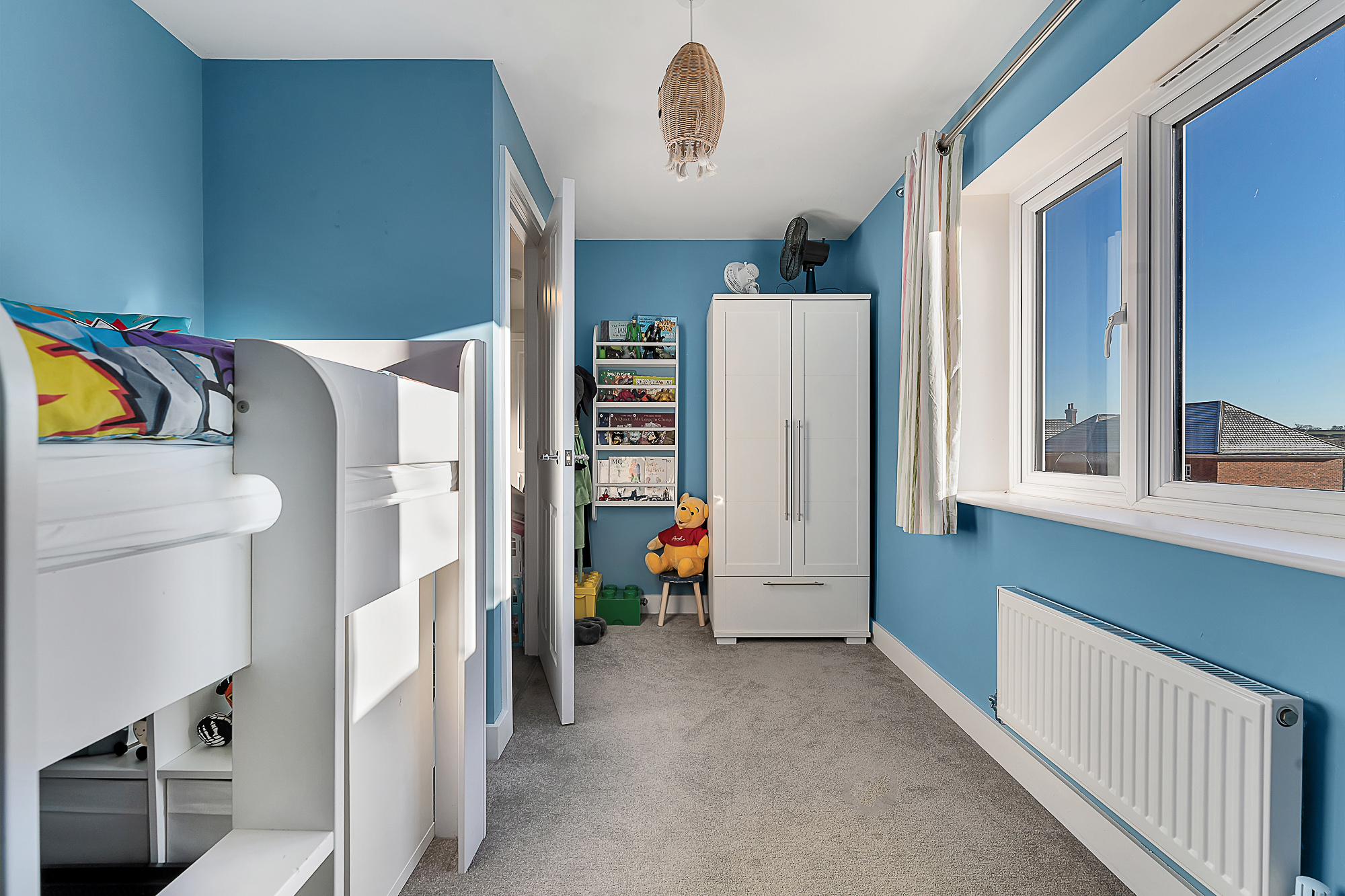 Bedroom One enjoys fitted wardrobes and an abundance of natural light thanks to a full height, front facing window. It also benefits from its own en suite, complete with a walk in shower cubicle, low level WC and pedestal wash basin.