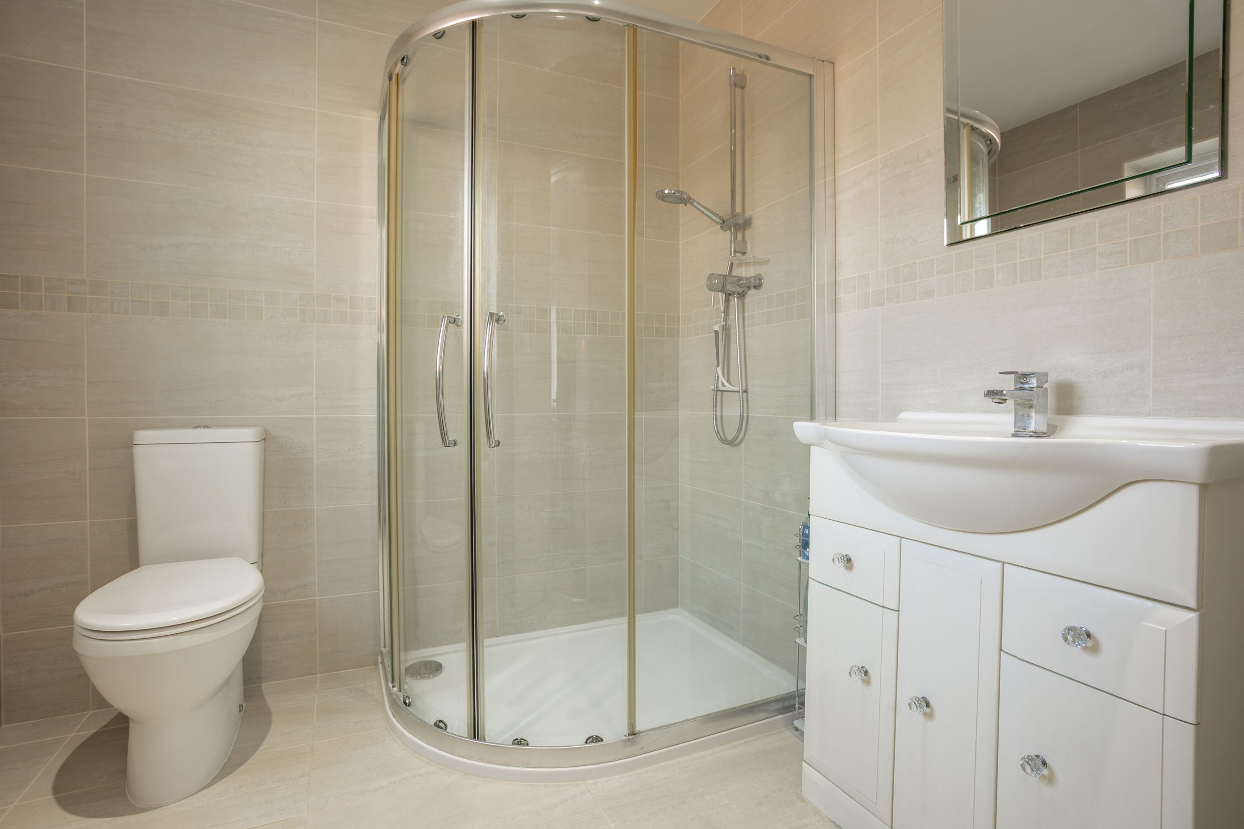 The family bathroom features a comprehensive design with full tiling, a bath, a separate corner shower, a vanity with basin, WC, and heated towel rail. The property blends modern updates with practical living spaces, creating a comfortable, stylish home that balances functionality and contemporary aesthetics effectively.