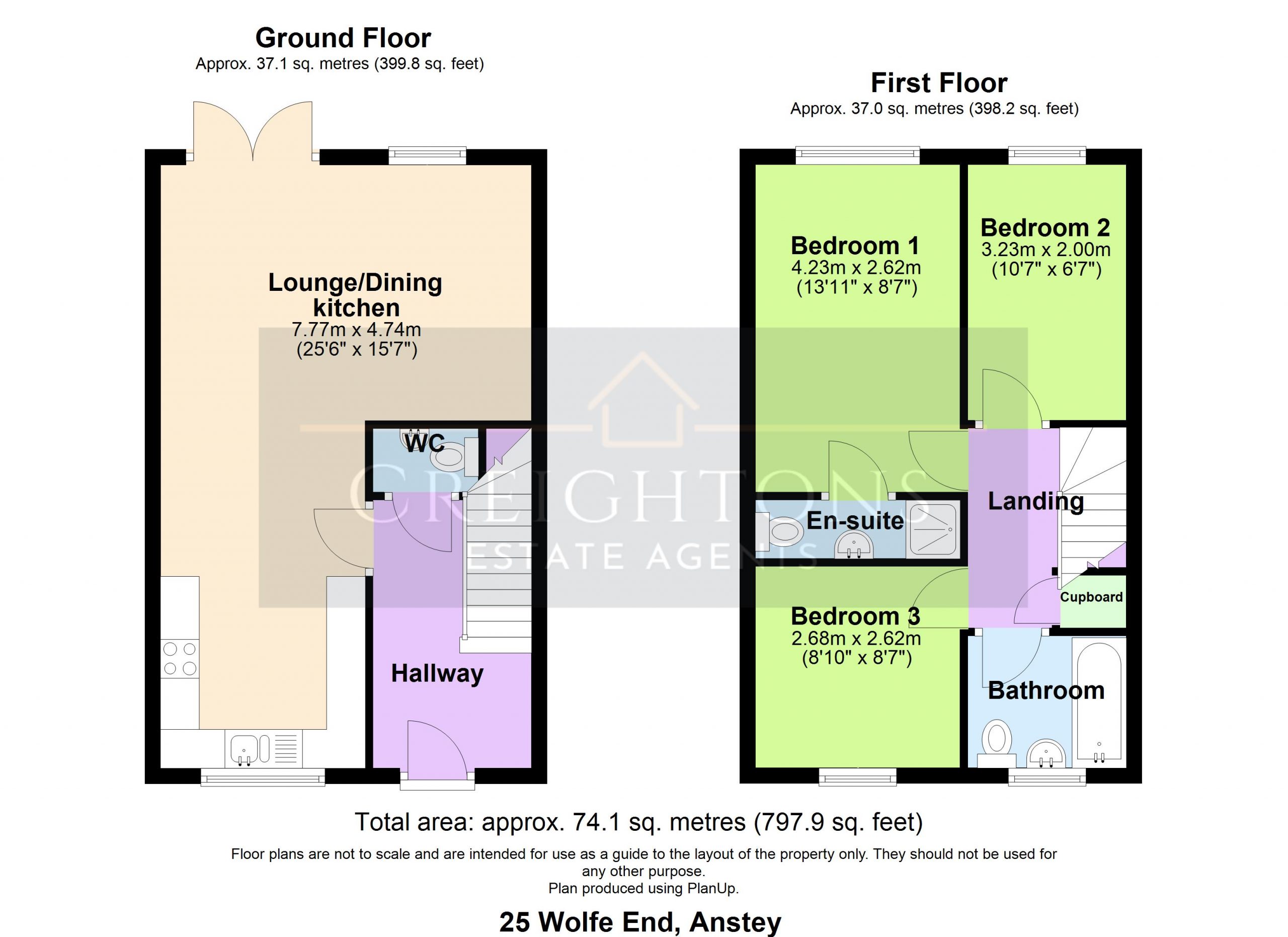 We must inform all prospective purchasers that the measurements are taken by an electronic tape and are provided as a guide only and they should not be used as accurate measurements. We have not tested any mains services, gas or electric appliances, or fixtures and fittings mentioned in these details, therefore, prospective purchasers should satisfy themselves before committing to purchase. Intending purchasers must satisfy themselves by inspection or otherwise to the correctness of the statements contained in these particulars. Creightons Estate Agents (nor any person in their employment) has any authority to make any representation or warranty in relation to the property. The floor plans are not to scale and are intended for use as a guide to the layout of the property only. They should not be used for any other purpose. Similarly, the plans are not designed to represent the actual décor found at the property in respect of flooring, wall coverings or fixtures and fittings.